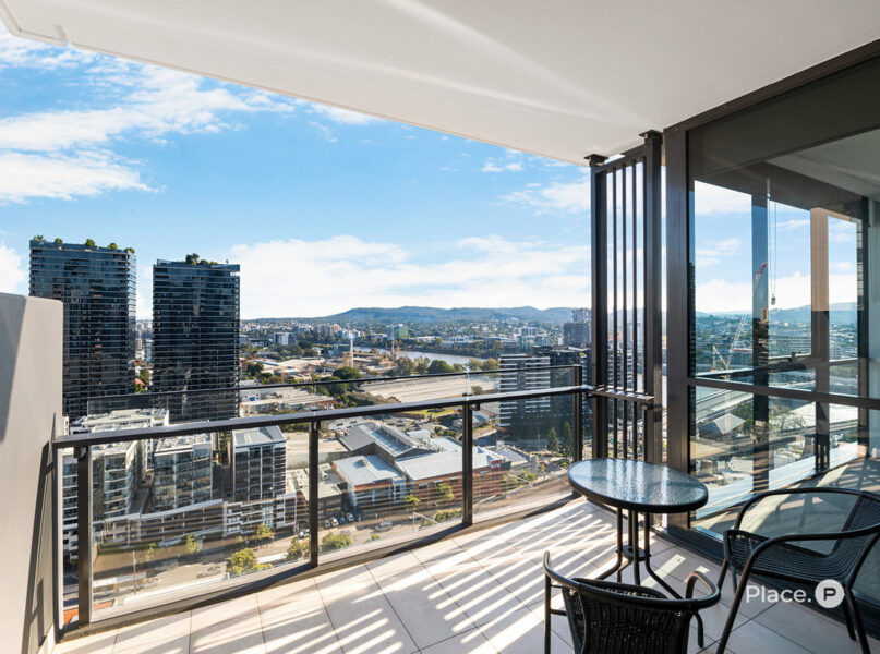 Expansive balcony offering sweeping 180-degree views of Brisbane