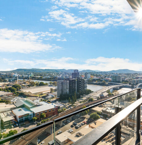 Expansive balcony offering sweeping 180-degree views of Brisbane