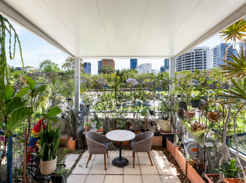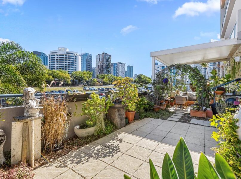 Located on the second level, this residence is a private oasis featuring dual courtyards, boasting an east-facing entertainer’s balcony with a stunning river outlook, never-to-be built out. At the rear, the residence showcases a sprawling city-facing terrace which has been transformed into a luxurious garden pavilion, including a water fountain and multiple entertaining areas perfect for alfresco dining and relaxation.