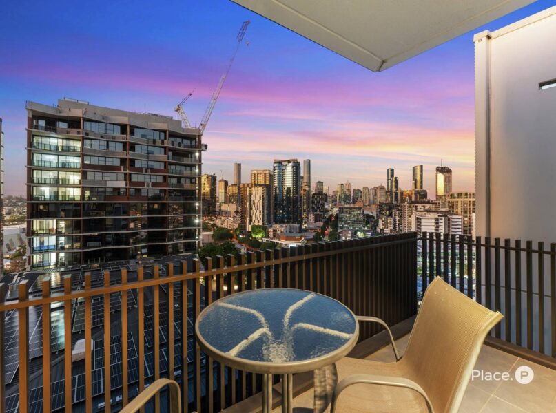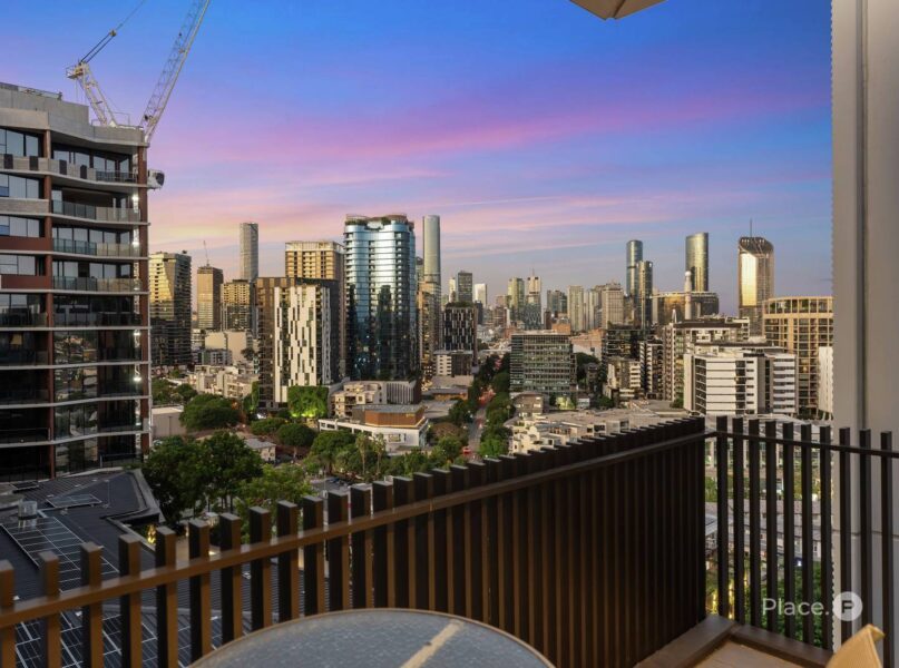 A large balcony that extends the living space, offering breathtaking northeast-facing views of the Brisbane city skyline – views you’ll never lose
