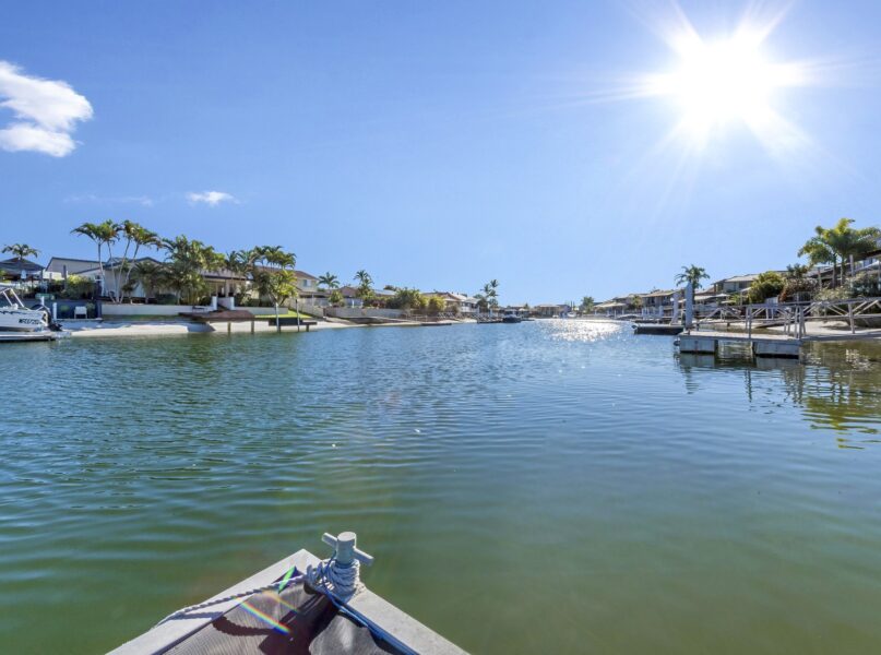 Dual Living potential, in Quiet cul-de-sac street Boasting impressive 18.3-metre waterfrontage! This substantial five-bedroom, five-bathroom residence on a 641sqm allotment offers a lifestyle to be envied. With open entertainment zones, dual-living potential, spacious garaging and additional off-street parking for a caravan or boat, the property truly ticks all the boxes.