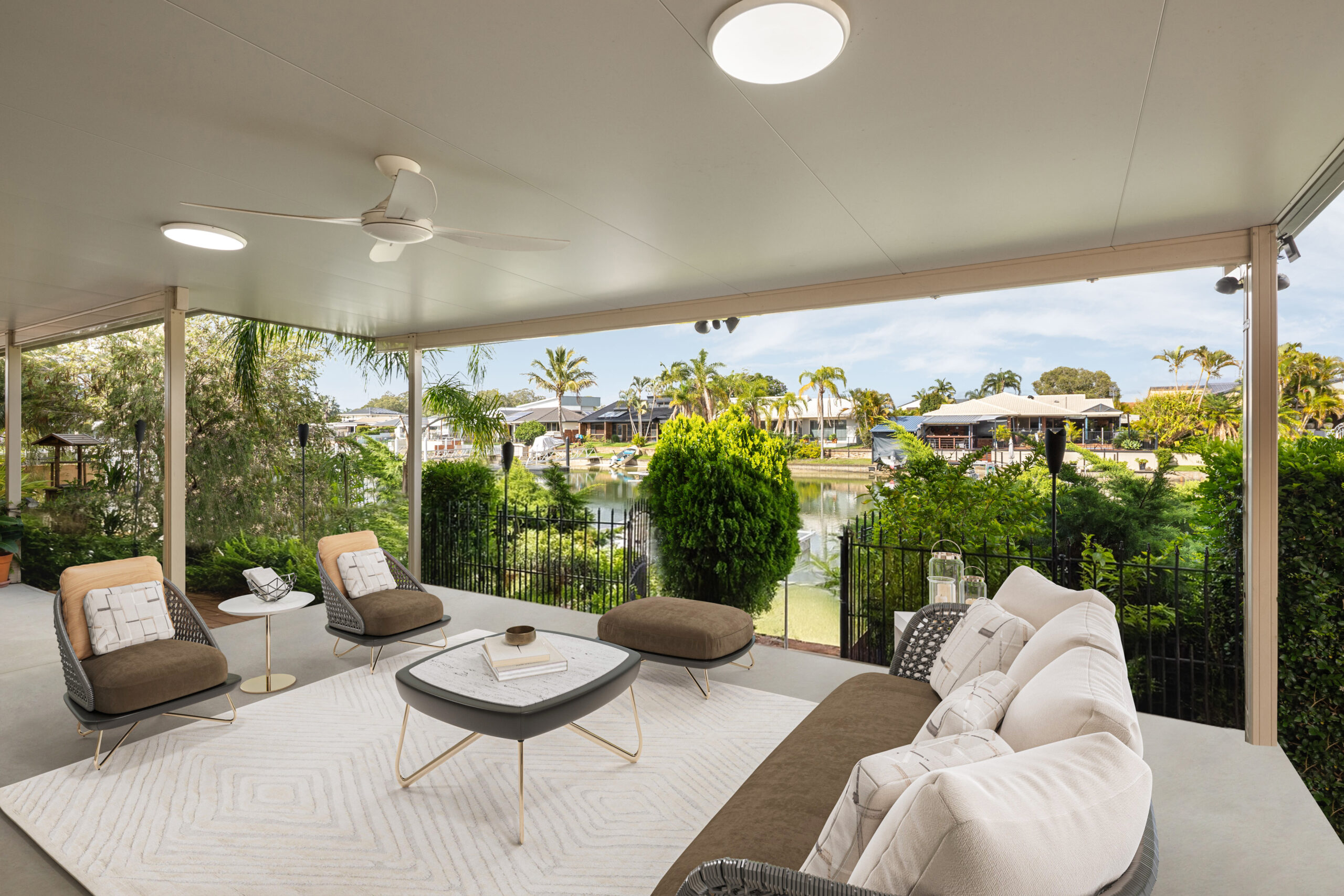 Dual Living potential, in Quiet cul-de-sac street Boasting impressive 18.3-metre waterfrontage! This substantial five-bedroom, five-bathroom residence on a 641sqm allotment offers a lifestyle to be envied. With open entertainment zones, dual-living potential, spacious garaging and additional off-street parking for a caravan or boat, the property truly ticks all the boxes.