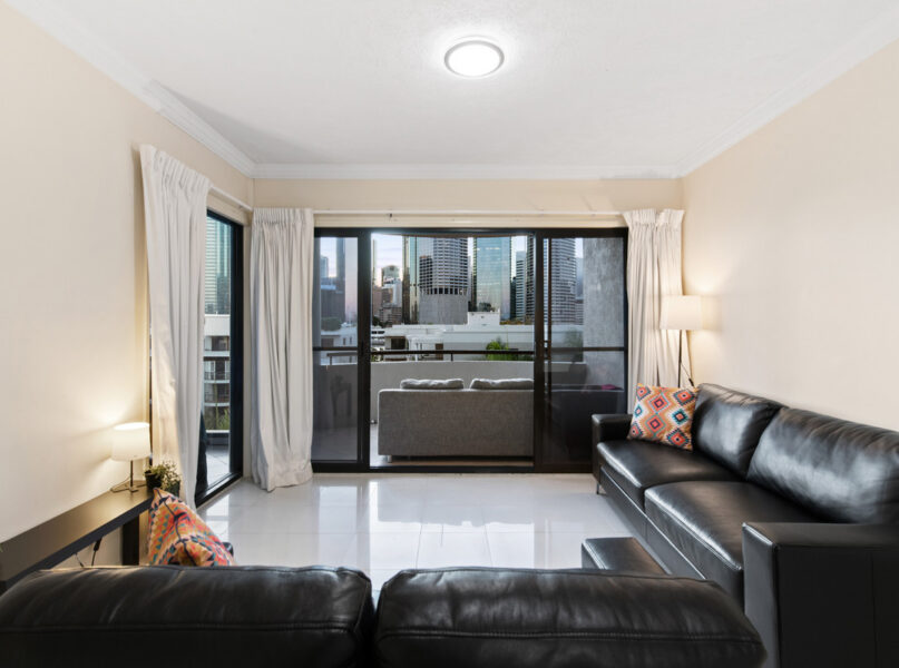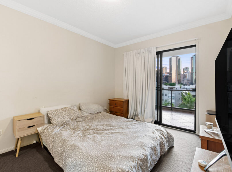 Forming the property’s heart, a generous open-plan living and dining area leads to a covered entertainers’ balcony. Looking out to the sparkling city skyline and the Brisbane River, this brilliant entertainers balcony is the perfect space to spend time with friends and family. There is also a superb kitchen displaying a breakfast bar, quality appliances and ample cupboard storage.