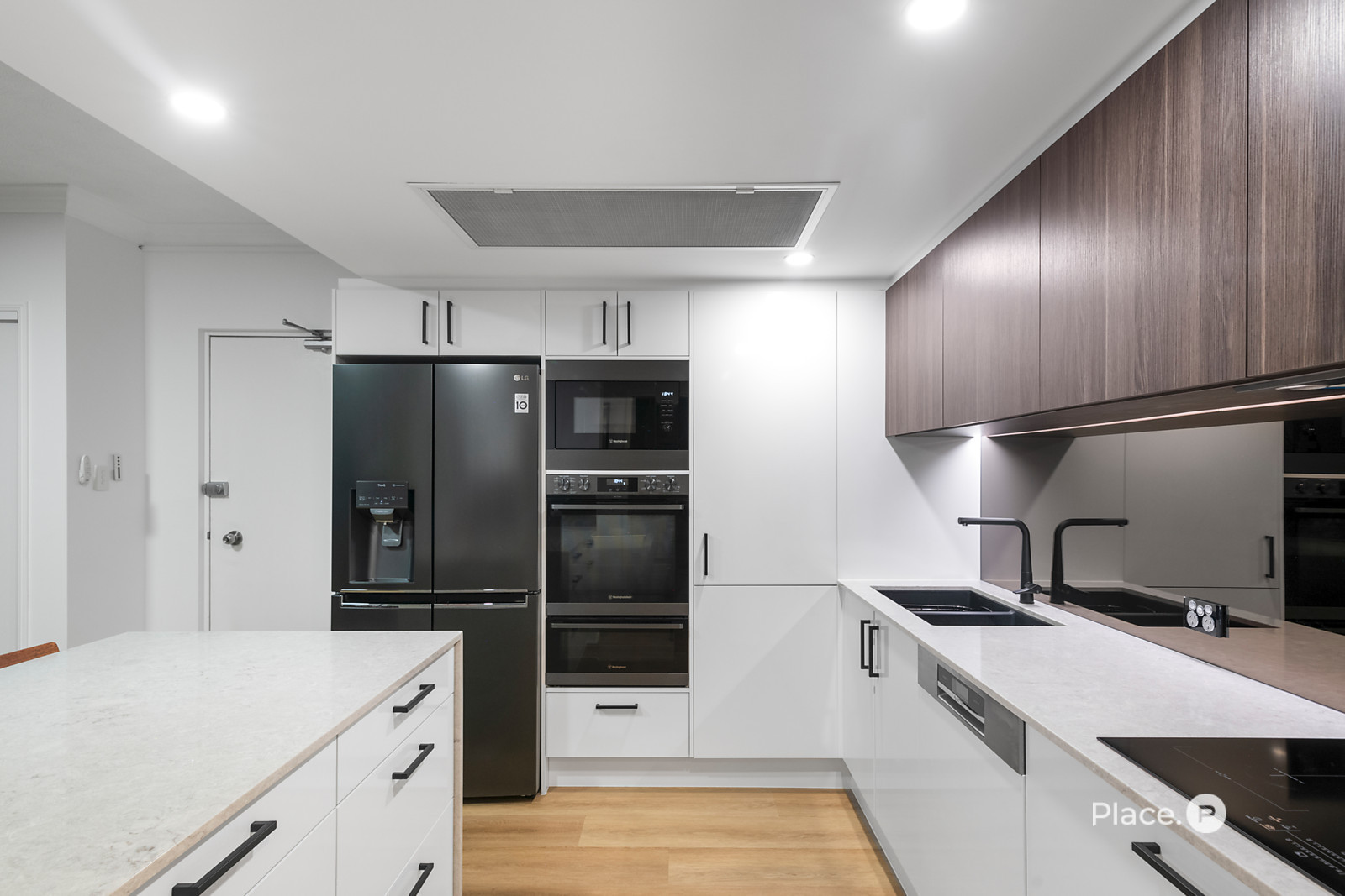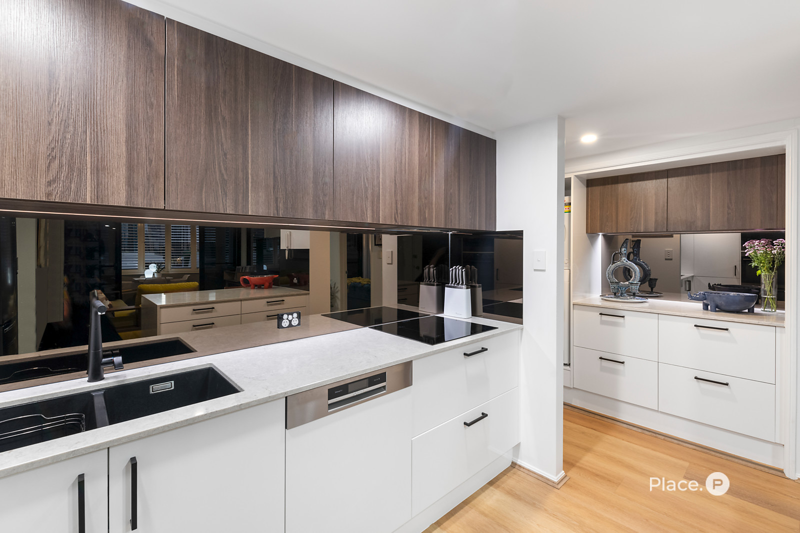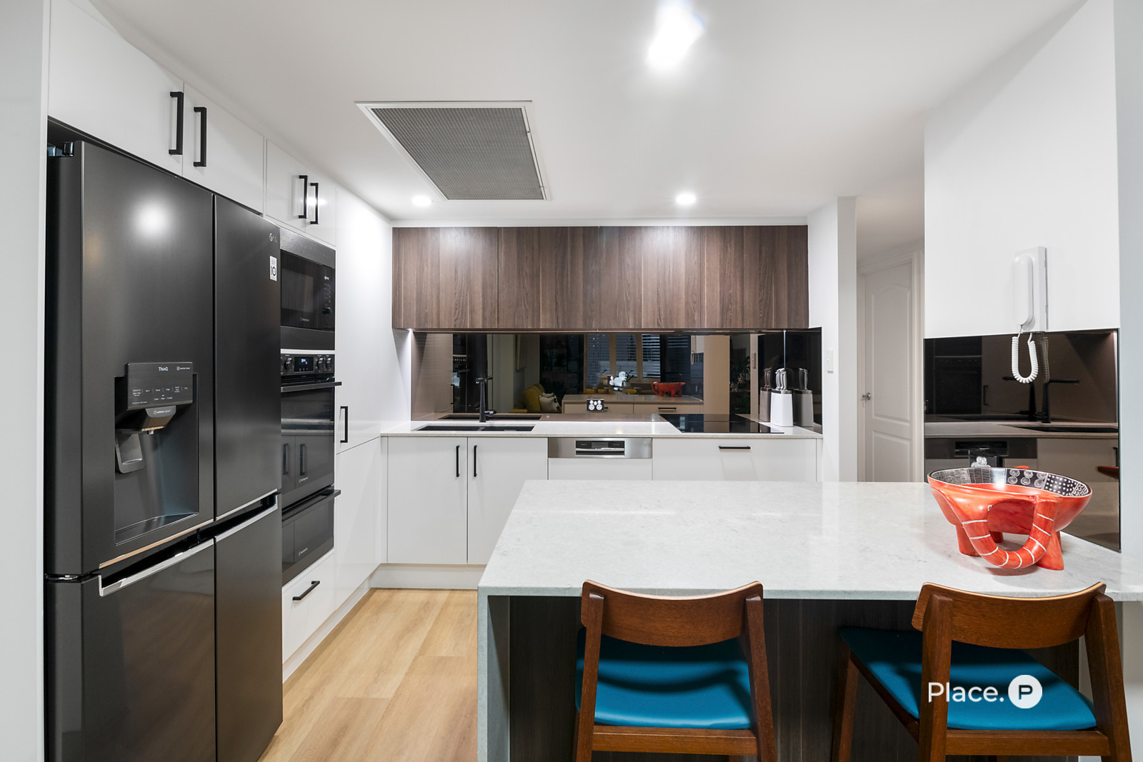 For the aspiring chef, the newly renovated kitchen is a dream, featuring top of the range integrated appliances, an island bench featuring a convenient breakfast bar showcasing a quality stone benchtop, a copper mirrored splashback, black accents and is perfectly designed for both casual meals and sophisticated entertaining.