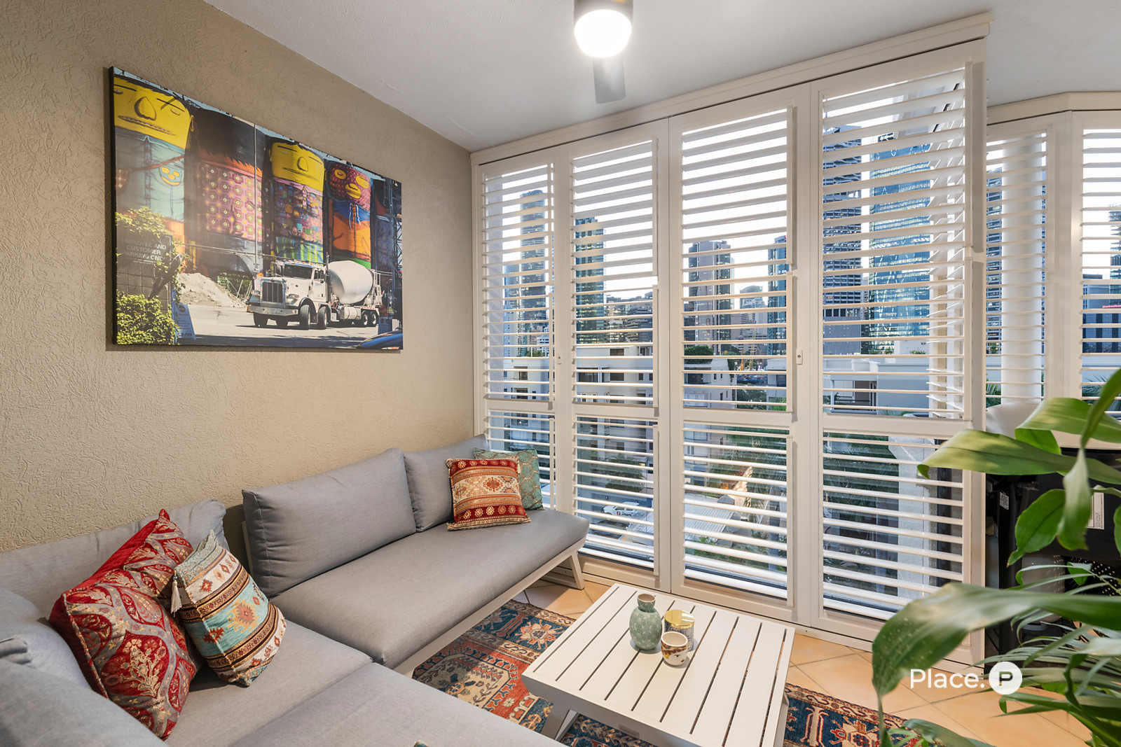 Redesigned with a smart, functional floor plan to optimise space and integrated living, the apartment features three generously sized bedrooms, two with updated built-in wardrobes, freshly painted throughout, offering an ideal balance of separation, space and comfort. The king-sized master bedroom is a sanctuary of luxury, complete with a stunning ensuite featuring a frameless glass shower, an elegant vanity, quality tap-ware, an iconic round mirror, stunning tiling, marble accents and access to the expansive balcony with premier plantation shutters.