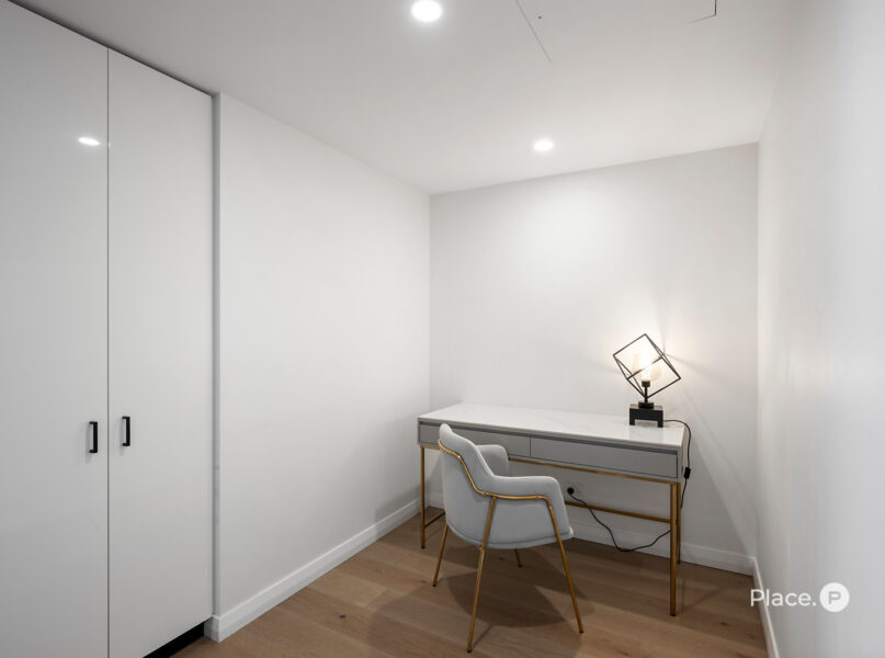 At the centre sits a refined kitchen, finished with stone benchtops, gas cooking, and premium Miele appliances — a specification reserved exclusively for residences on Level 17 and above. It’s a space where form and function are carefully balanced, and everyday routines feel considered rather than rushed.