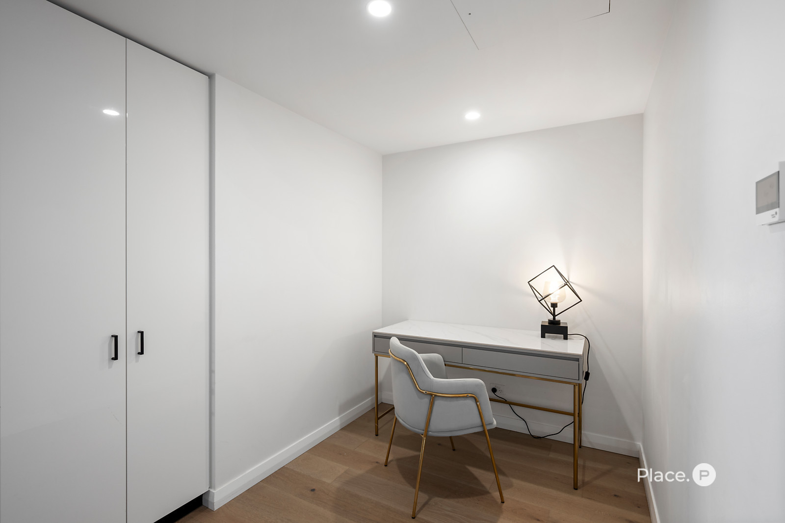 At the centre sits a refined kitchen, finished with stone benchtops, gas cooking, and premium Miele appliances — a specification reserved exclusively for residences on Level 17 and above. It’s a space where form and function are carefully balanced, and everyday routines feel considered rather than rushed.