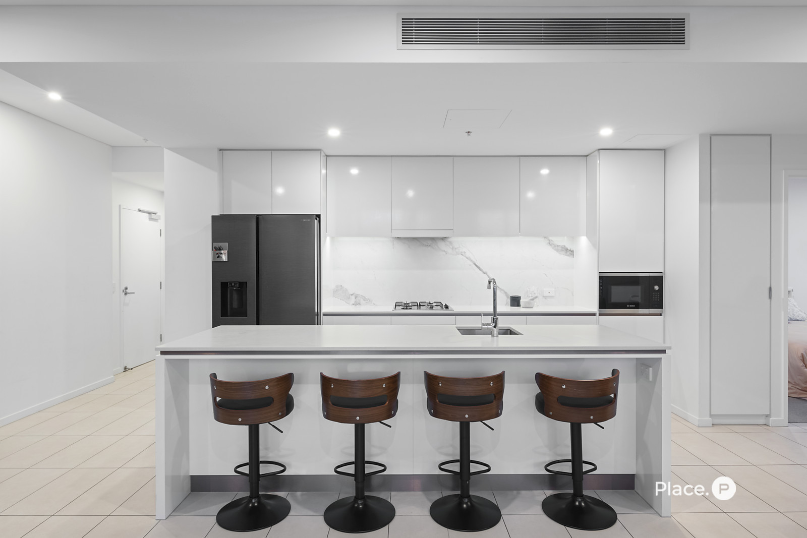 Entertainers and avid cooks alike will also appreciate the apartment’s sensational kitchen, which displays a large breakfast bar, stone benchtops, premium Bosch appliances and ample cupboard storage.
