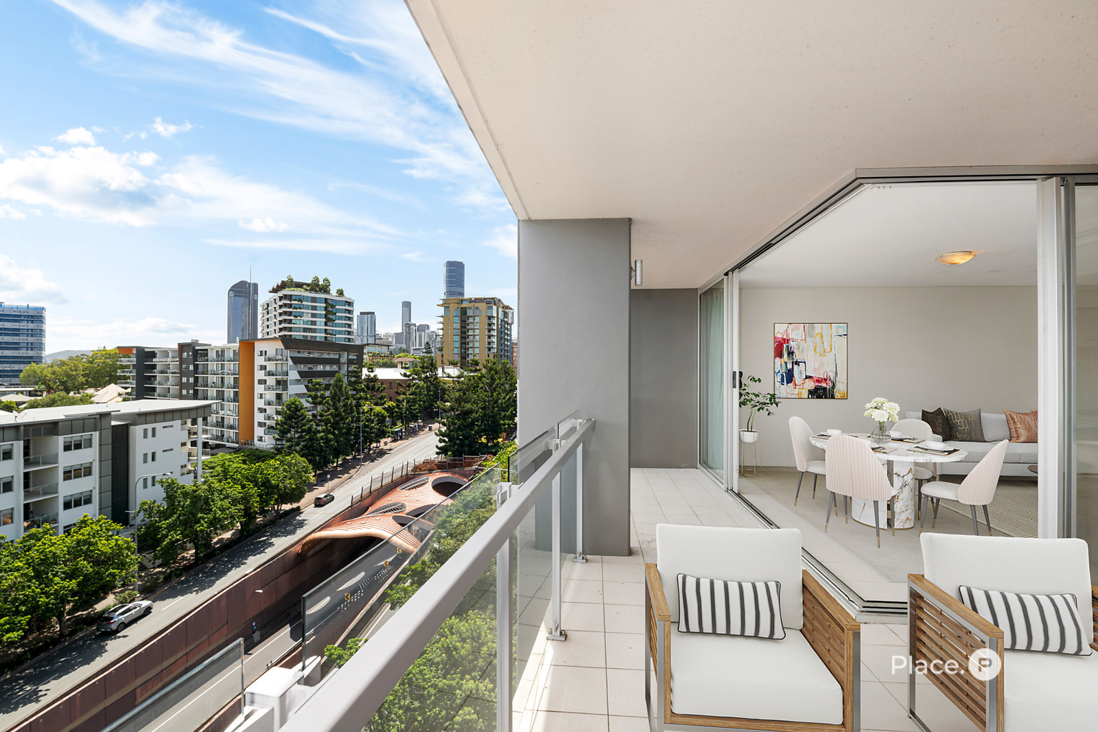 Positioned on level seven, the apartment commands sweeping vistas over Kangaroo Point, Woolloongabba, South Bank, and the sparkling Brisbane city skyline—a perfect backdrop to city living.