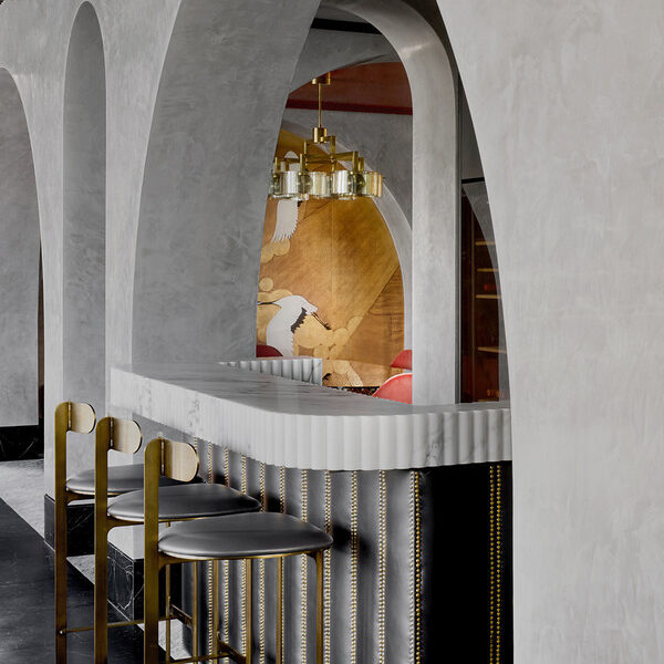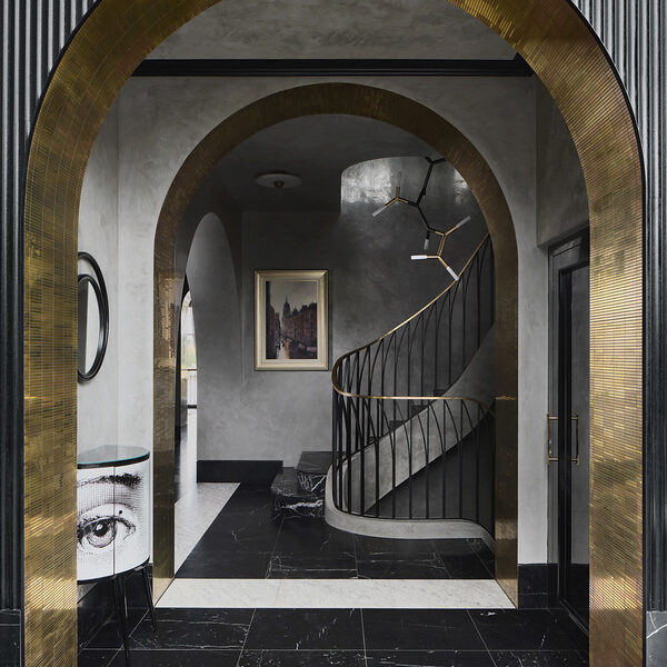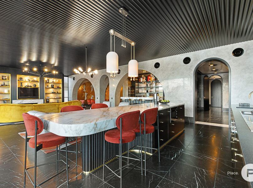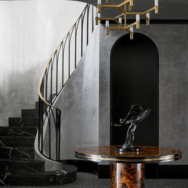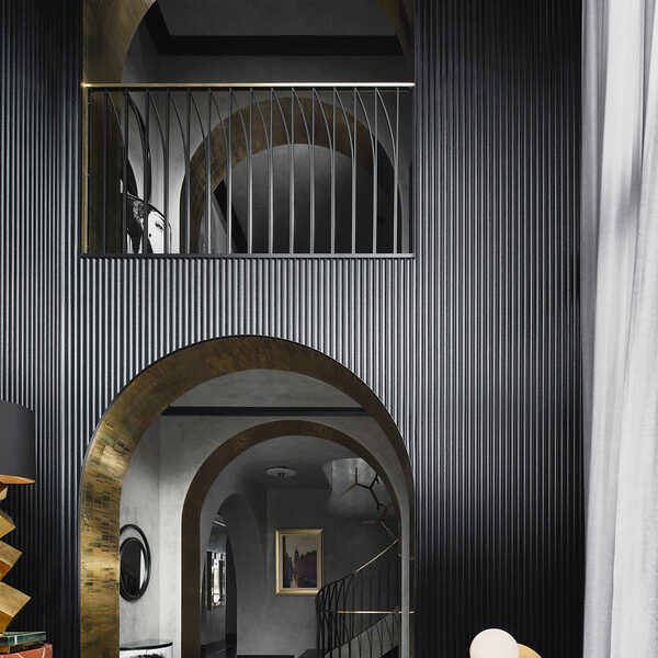 Making an outstanding first impression with its grand European-inspired façade, the residence also showcases well over three-metre-high vaulted ceilings, venetian glass tapware, concrete-formed curved staircases and brass archways.