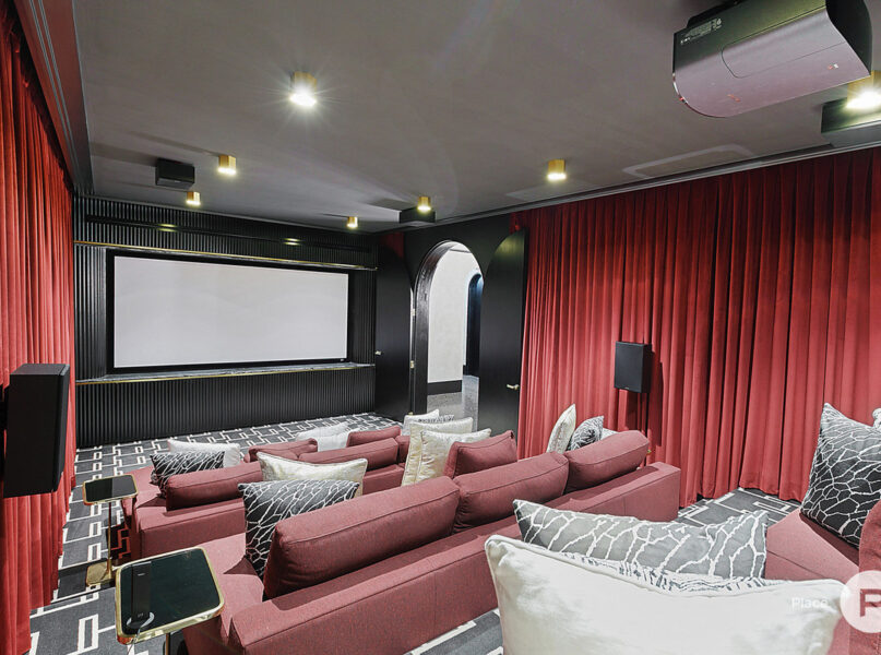 Downstairs, a generous second living area with a spa retreat leads to an expansive al fresco area and an outdoor kitchen. You will also find a grassed rear yard, landscaped gardens and an in-ground swimming pool. Continuing the entertainment options is a fully-equipped home theatre, plus a marina berth fitting up to a 15-metre vessel.