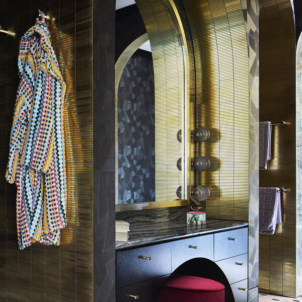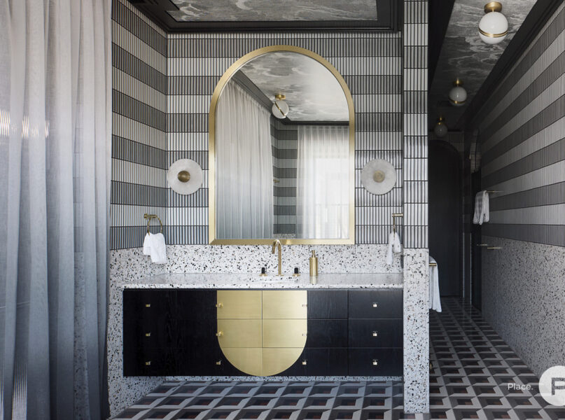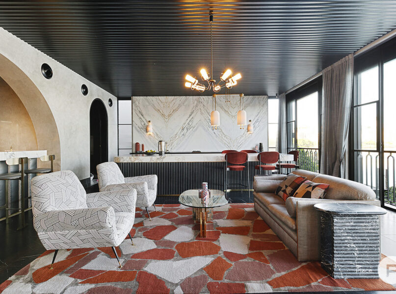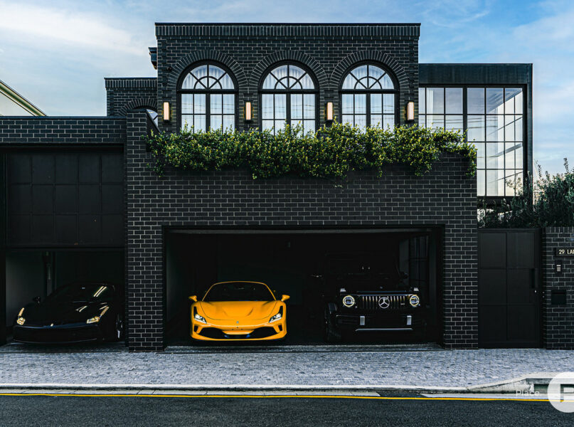 On the third level, an ensuited master suite with Gucci wallpaper encompasses a private balcony, a 10-metre-long walk-in robe, a private fireplace. An opulent living space completes the ultimate master retreat. Another three ensuited bedrooms also feature walk-in robes, while an ensuited guest bedroom on the ground level is fitted with a built-in robe.