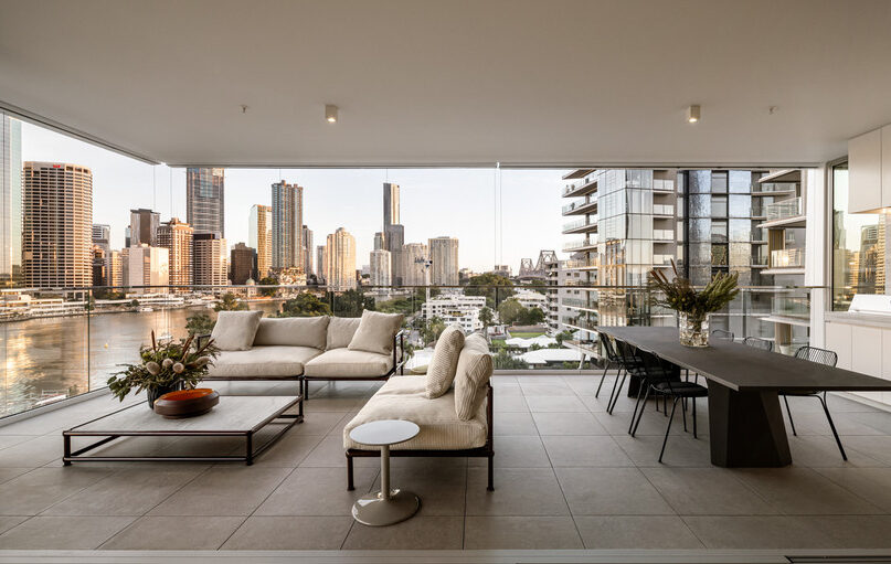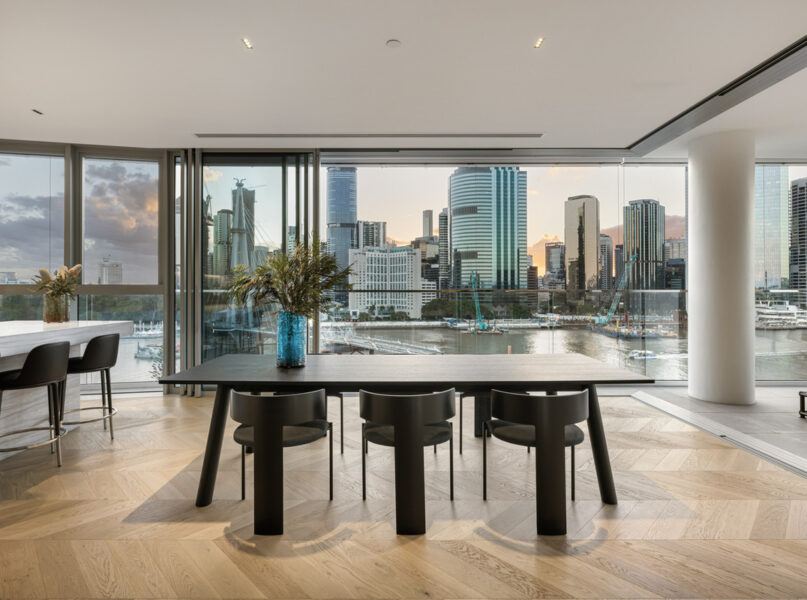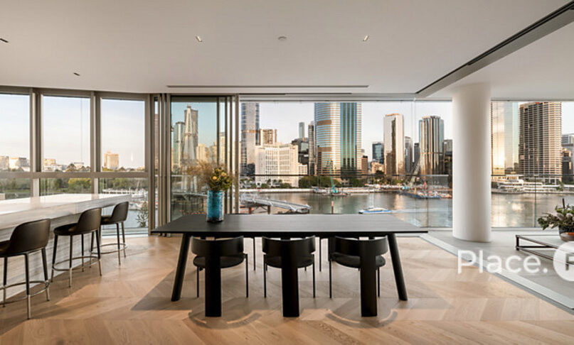 This apartment is every entertainer’s dream with a backdrop of the Brisbane City skyline as it turns from day to night, along with views of both peaks of Brisbane’s most iconic landmark, the Story Bridge.