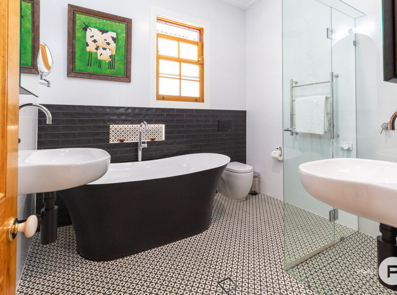 – Exquisite timber floors, half VJ walls, a grand timber staircase, French doors and a calming neutral colour palette