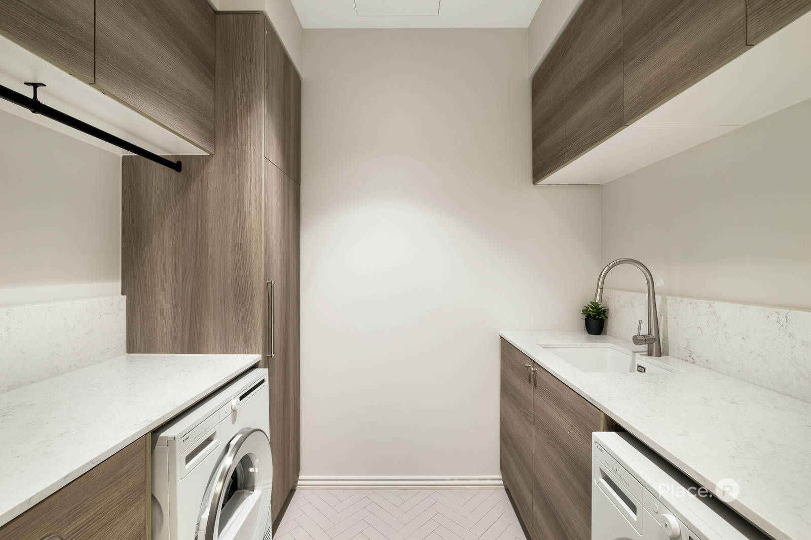 The luxury continues with four spacious bedrooms, including a master suite with a dual-wing wardrobe, freestanding bath, and double showers. The home also includes a media room or office, three opulent bathrooms, ample storage, and a private three-car garage. Premium features include Kasta smart lighting, ducted air-conditioning, automated blinds, and secure entry with Yakisugi timber details.