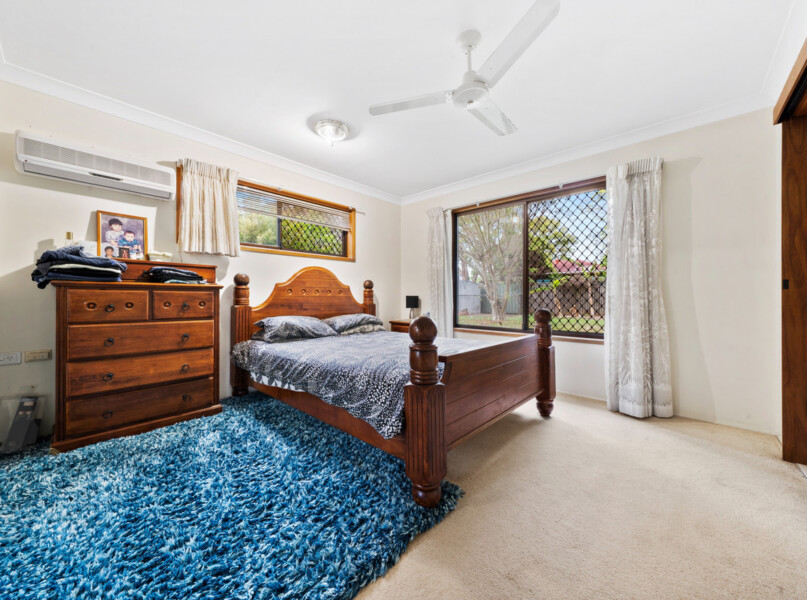 – Oversized bedroom with ceiling fan, built-in robes & split system air-conditioning