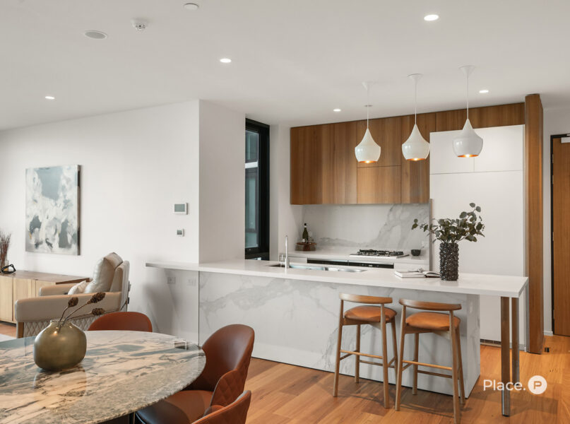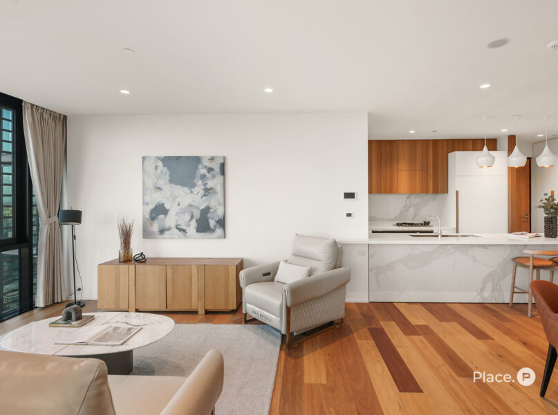 Recently awarded dual winner in the 2024 Council on Tall Buildings and Urban Habitat Awards of Excellence, the complex is ideally positioned for enjoying the city’s excitement. Complementing its vibrant surrounds, the apartment features exquisite timber floors and natural stone accents that add warmth and character. Lofty ceilings and full-height glass create a bright and airy atmosphere, while also highlighting the breathtaking vista.