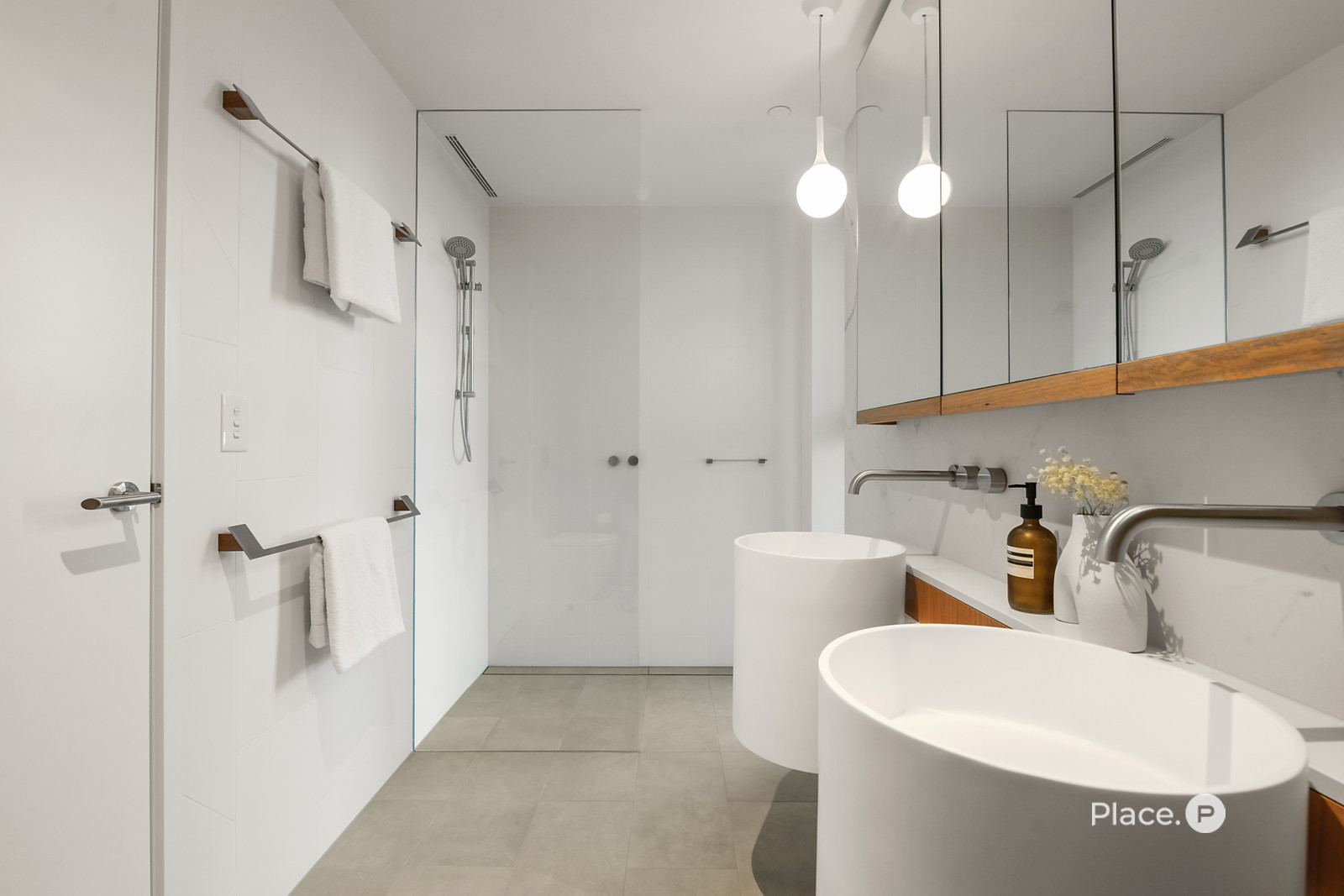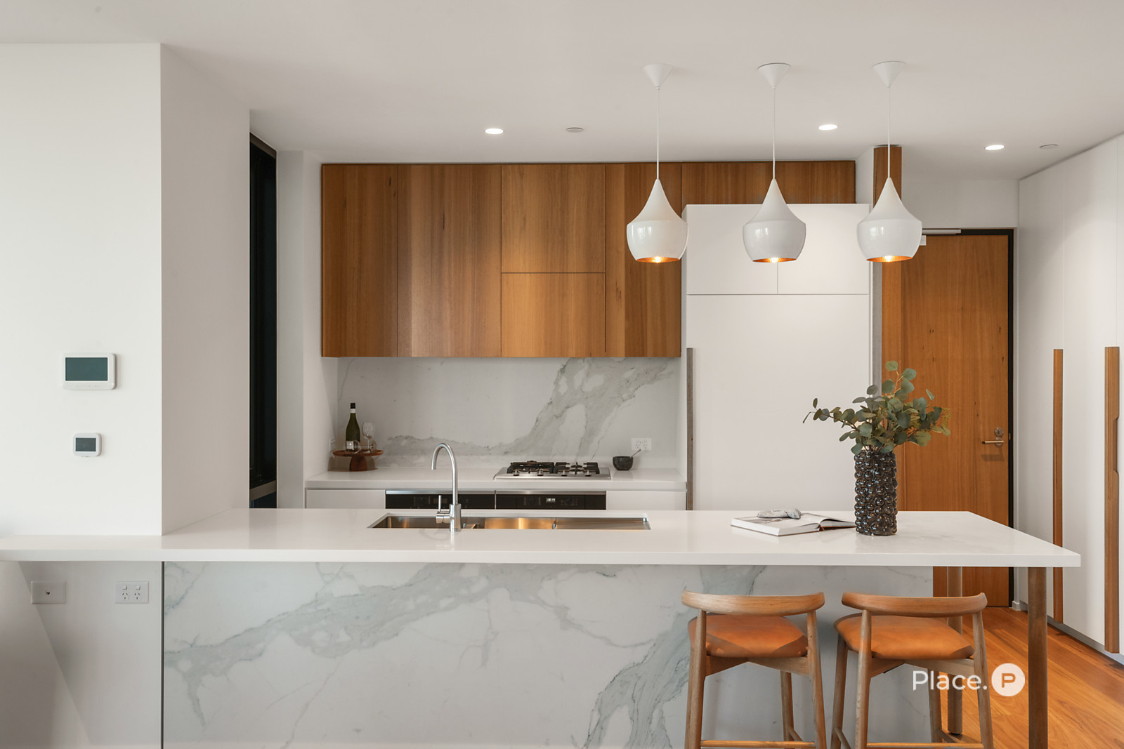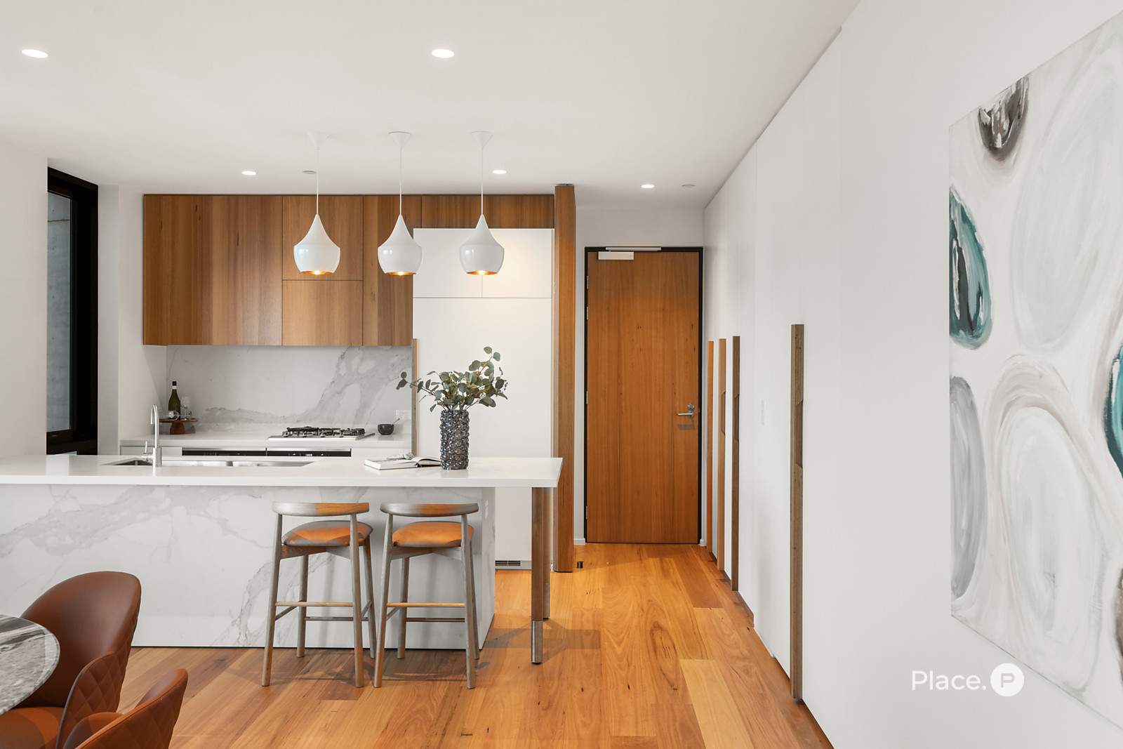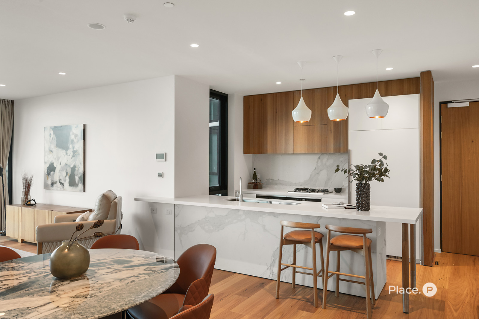 Finishing the refined central area, a spectacular kitchen displays stone benchtops, a breakfast bar, pendant lights, Miele appliances and ample cupboard storage. Additionally, a multitude of acclaimed restaurants, cafes and bars are at ground level.