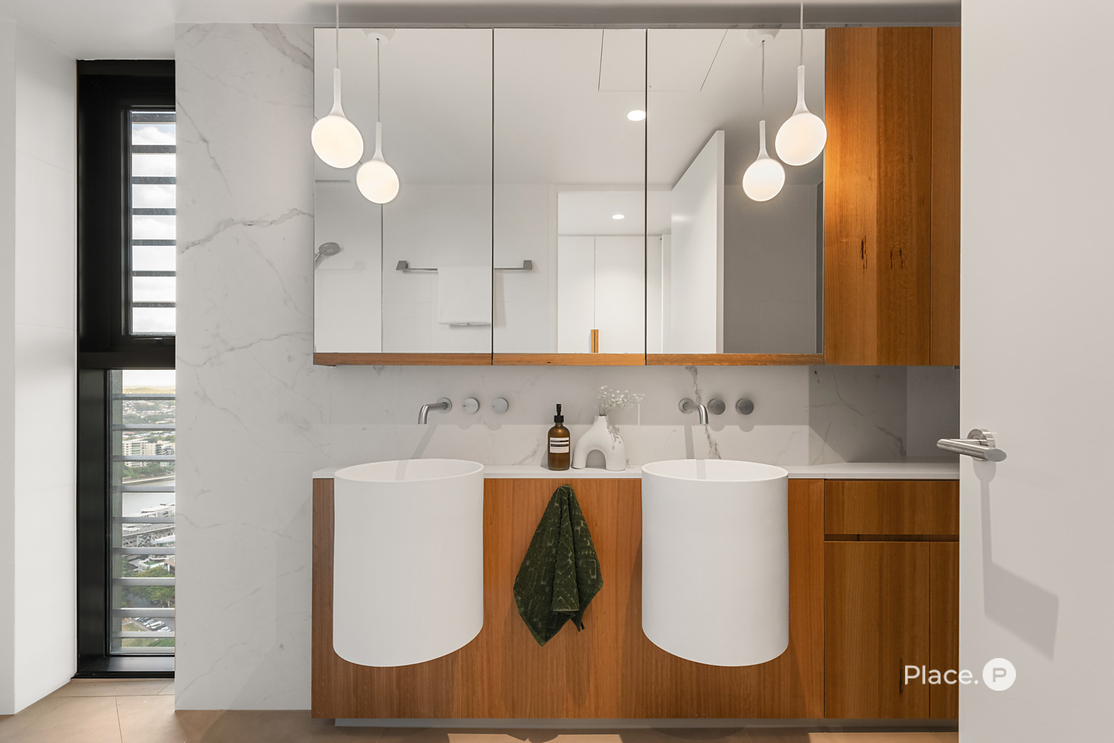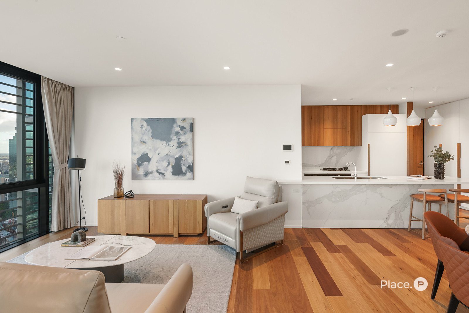 Recently awarded dual winner in the 2024 Council on Tall Buildings and Urban Habitat Awards of Excellence, the complex is ideally positioned for enjoying the city’s excitement. Complementing its vibrant surrounds, the apartment features exquisite timber floors and natural stone accents that add warmth and character. Lofty ceilings and full-height glass create a bright and airy atmosphere, while also highlighting the breathtaking vista.
