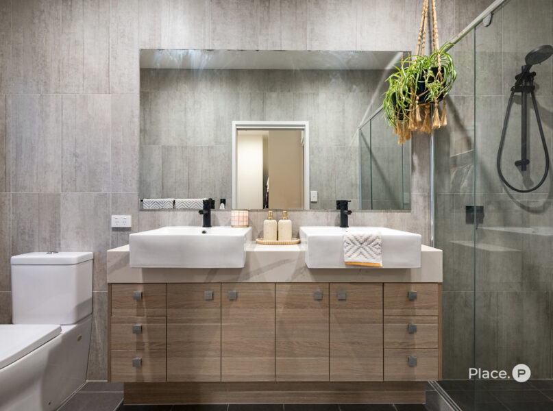 • Bathrooms of Distinction: The main bathroom includes floor-to-ceiling tiles, twin basins, and shower over bath.