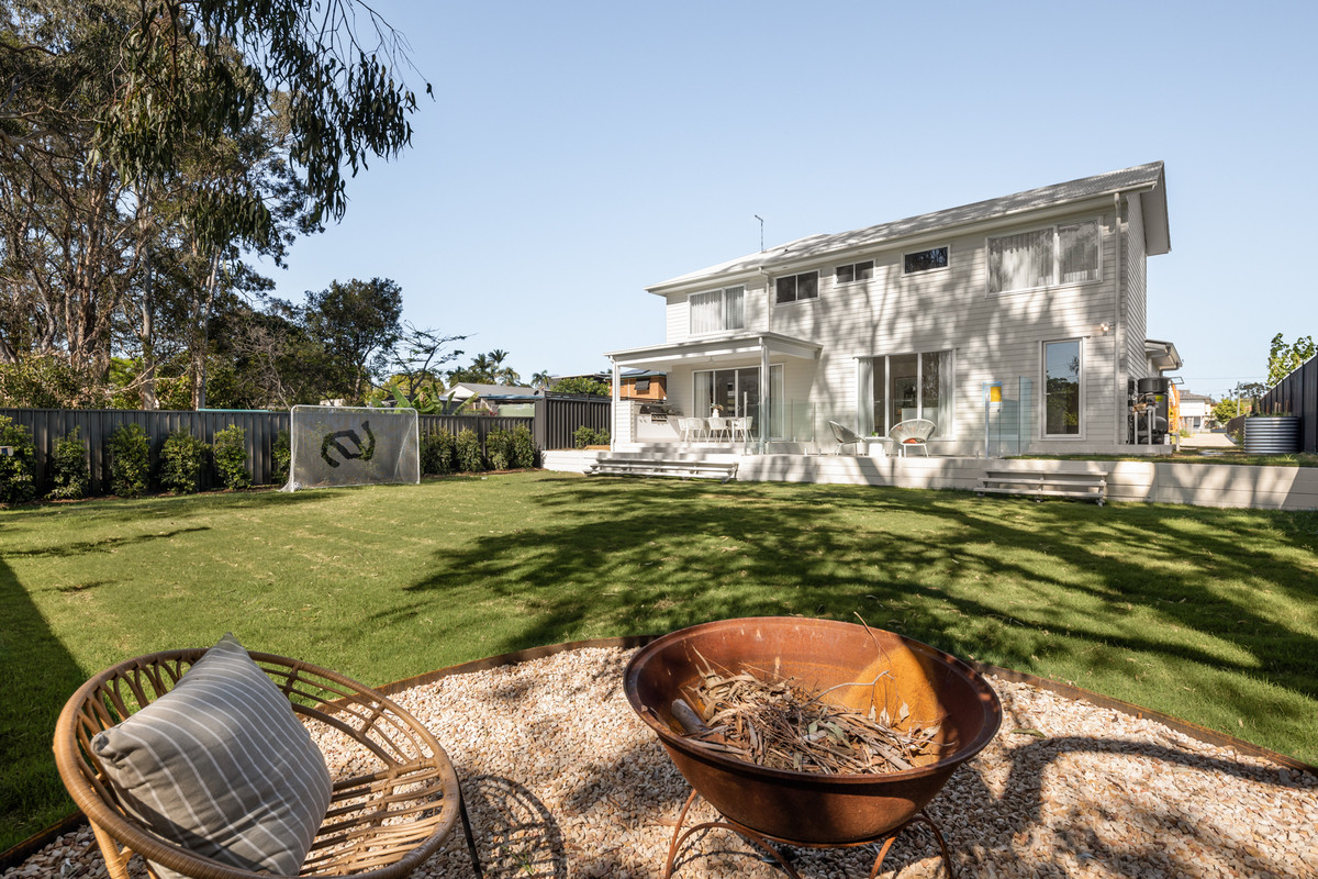 Steps away, a covered alfresco area encompasses a full outdoor kitchen with a built-in barbecue. You will also find a fully-fenced grassed rear yard boasting established gardens, a firepit area, vegetable gardens and a sparkling in-ground swimming pool.