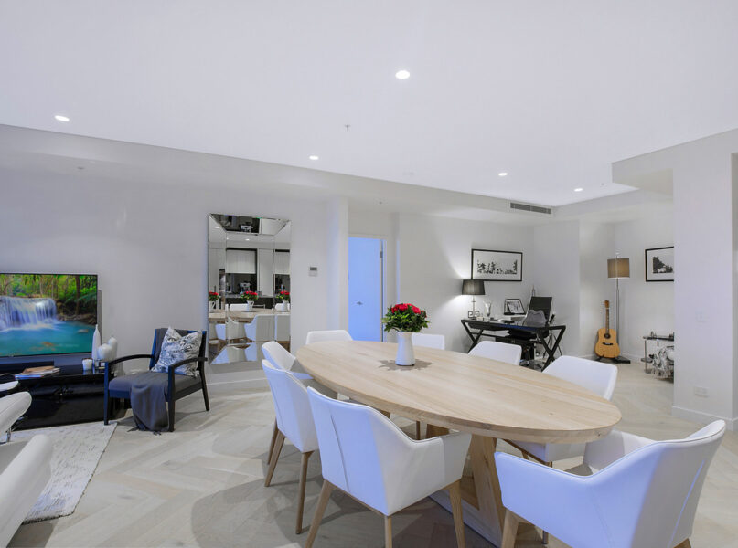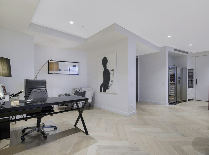 Offering vast amounts of space for relaxing and entertaining, the apartment encompasses a generous open-plan living and dining area that greets you upon the double entry doors. Capturing plenty of natural light and stunning views, this immaculate central space spills out onto two covered balconies. Entertainers and avid cooks alike will also appreciate the property’s enviable kitchen, which displays a breakfast bar, quality Siemen’s appliances such as a gas cooktop and ample walk-in pantry and cupboard storage. A separate study and office area captures the city views whilst you work or relax.