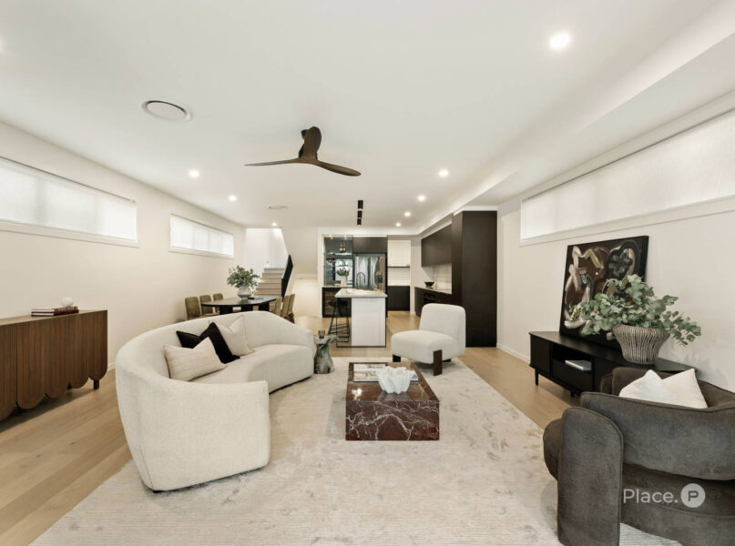 Making a brilliant first impression with its striking modern facade and established front gardens, the home is also elevated by engineered timber floors and lofty ceilings. A timeless neutral colour palette showcased throughout creates a warm and inviting atmosphere.