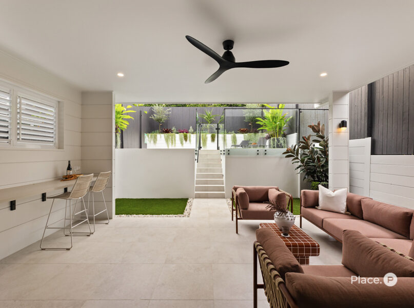 Seamlessly extending from the central living area, a partially-enclosed al fresco area has an integrated bar and superb entertainment space. An external staircase leads up to a fully-fenced artificially-turfed rear yard benefitting from established gardens and a sparkling in-ground swimming pool.