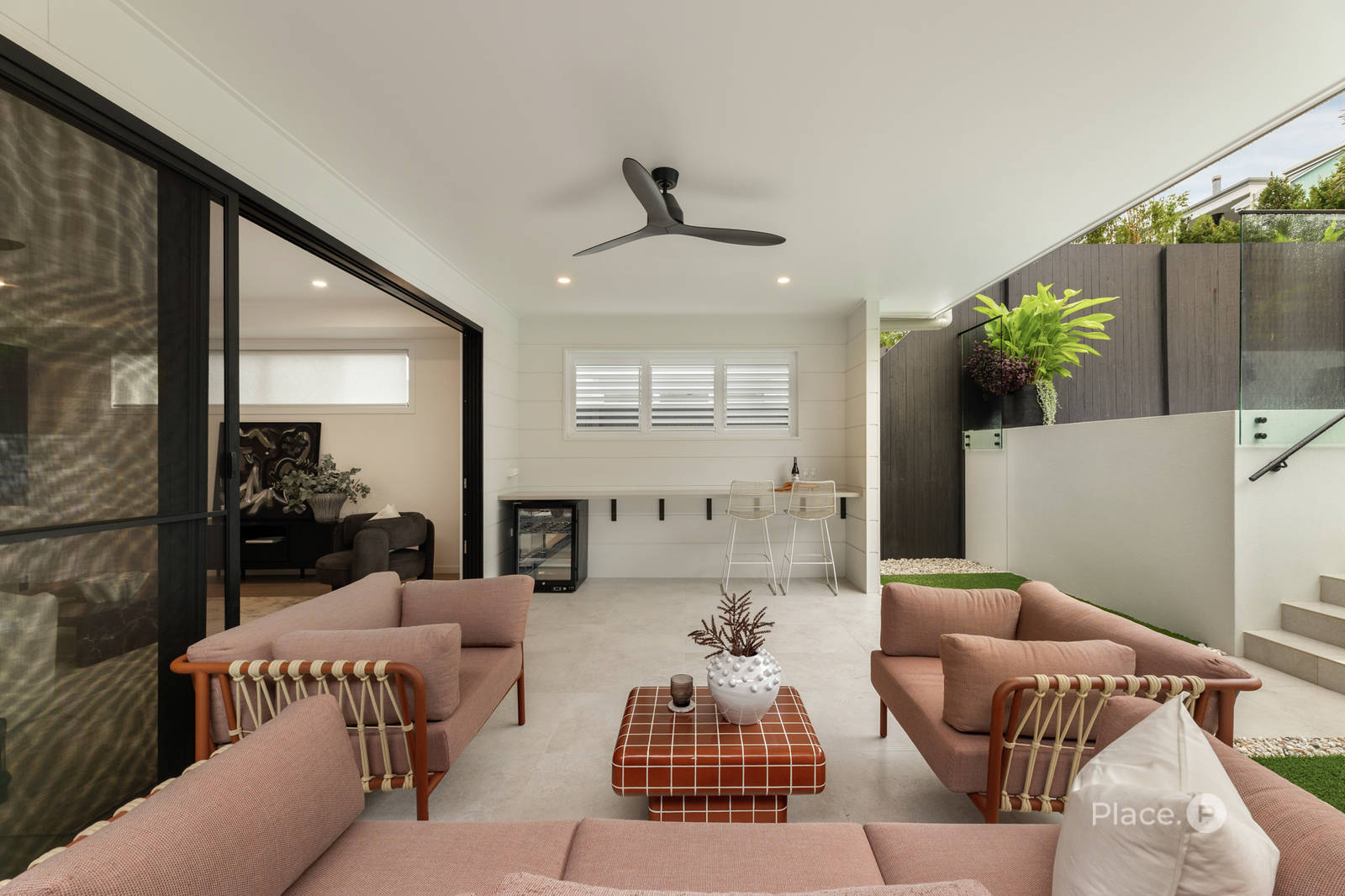 Seamlessly extending from the central living area, a partially-enclosed al fresco area has an integrated bar and superb entertainment space. An external staircase leads up to a fully-fenced artificially-turfed rear yard benefitting from established gardens and a sparkling in-ground swimming pool.