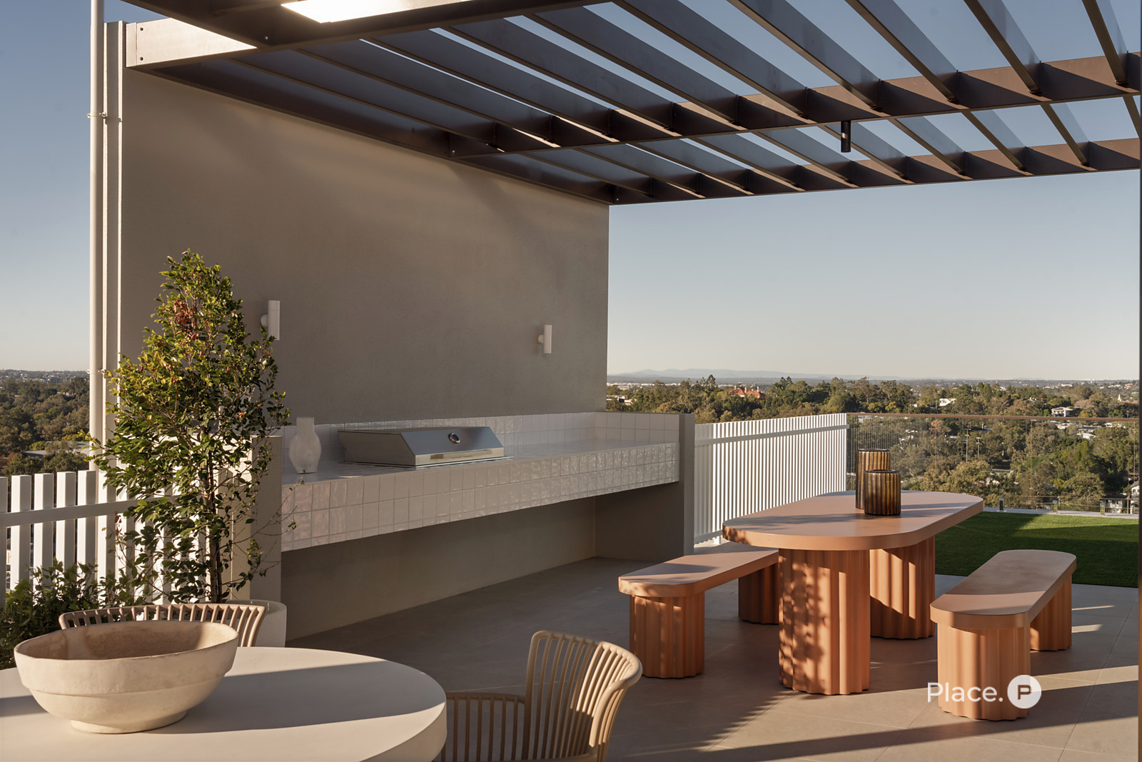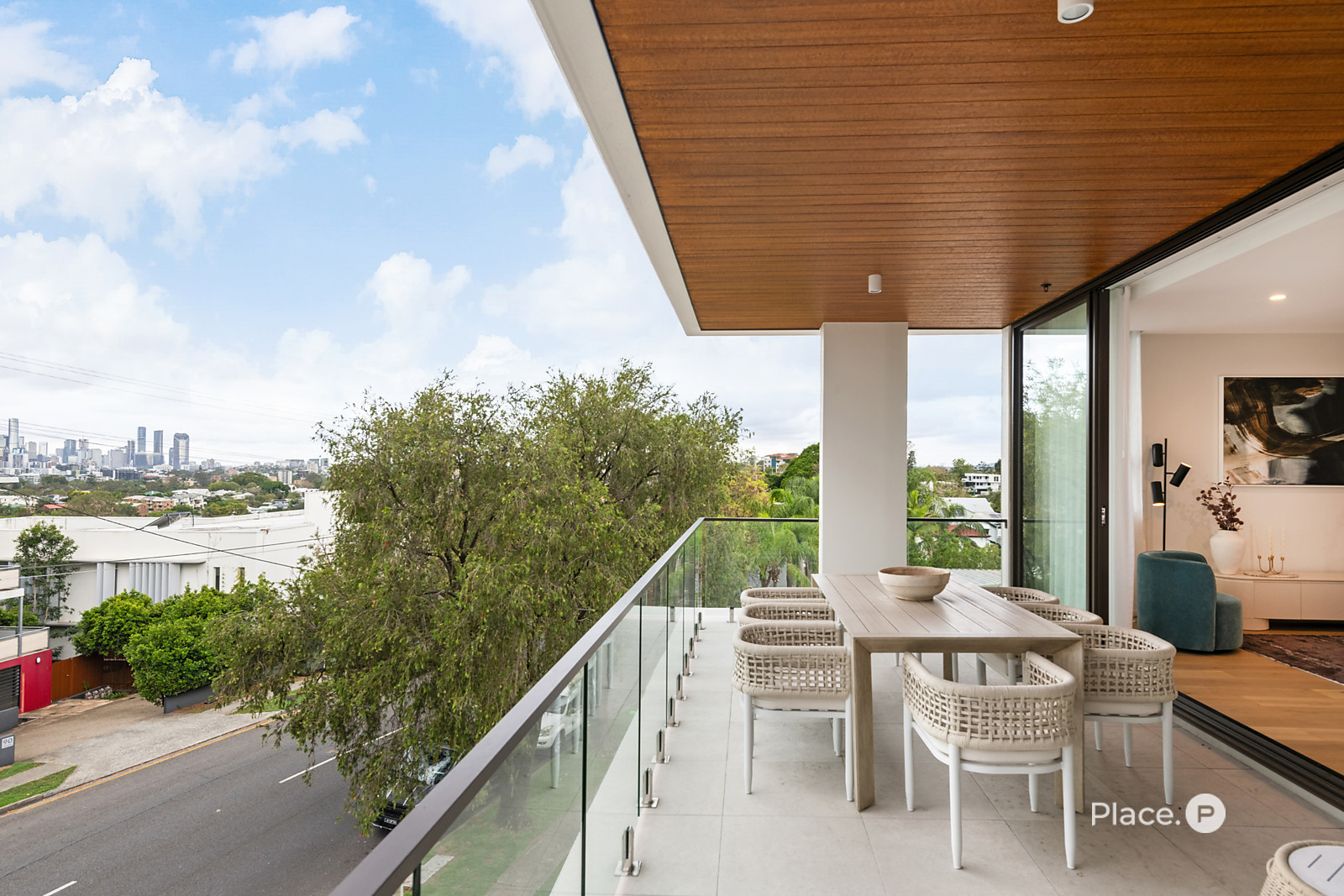 At the heart of the home, a generous open-plan living and dining area welcomes abundant natural light and opens onto a covered balcony — the perfect space for entertaining while taking in the breathtaking city skyline.