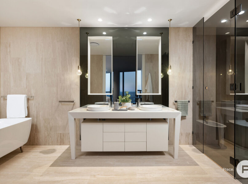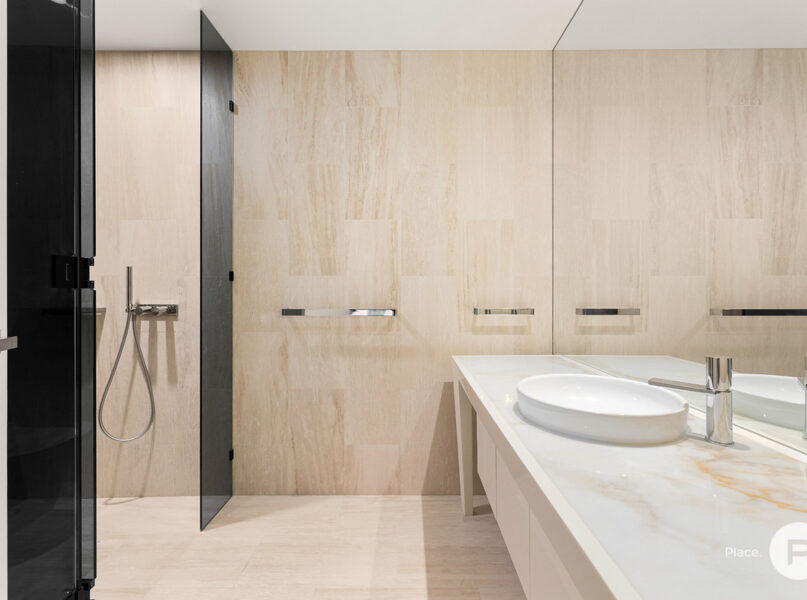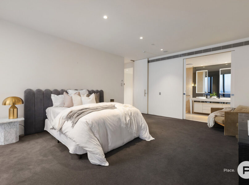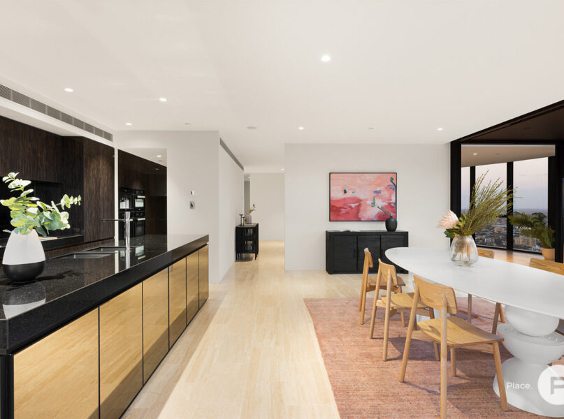 The dining room is perfectly positioned, connecting the kitchen to the outdoor balcony – perfect for all-year-round entertaining. Close to here is the expansive living area, which is a size rarely found in units. This space opens to a balcony enjoying uninterrupted views as far as the eye can see. Each hallway becomes a gallery awaiting your prized art collection to grace the walls.