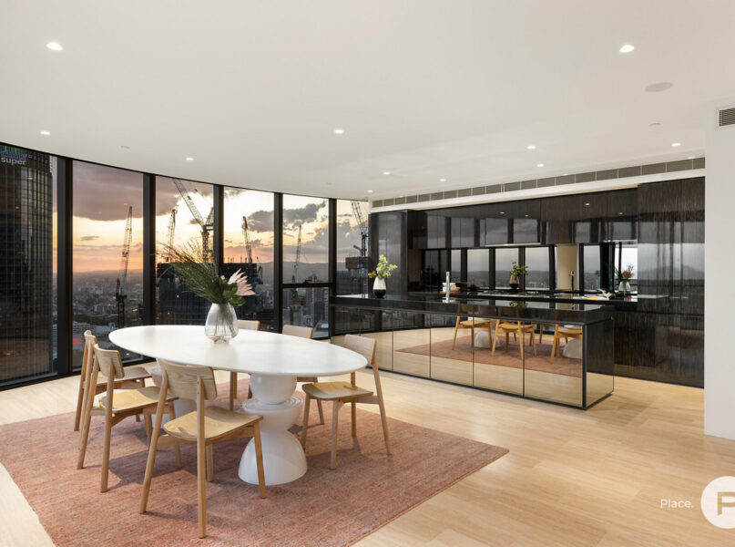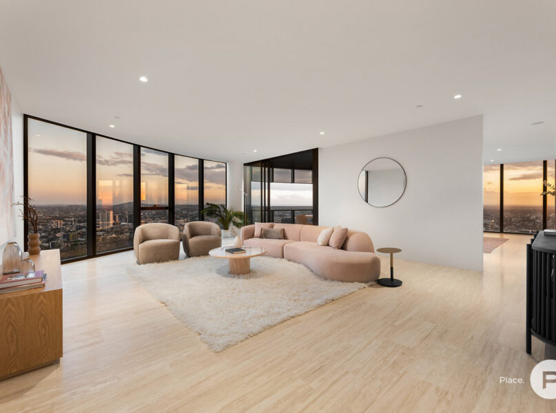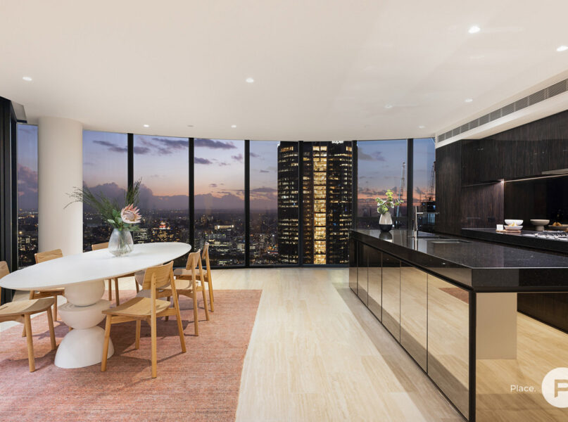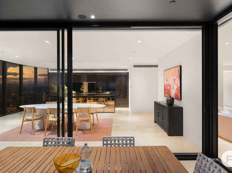 Capturing the curvilinear façade of the building with the enormity of space spanning a generous 320sqm, the property benefits from house-like proportions that maximise the entertainment spaces with floor-to-ceiling glass framing every room.