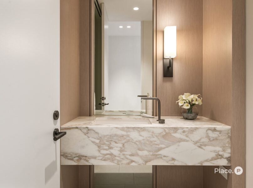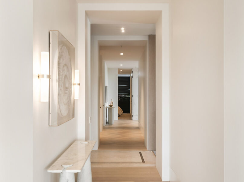 The efficiency of design allows for functional spaces with the hallway offering lengths of dedicated art walls and concealing the guest powder room.