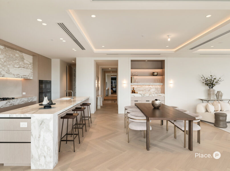 The intricately crafted kitchen becomes the centerpiece of the home with a luxurious island bench finished with high-quality appliances, an abundance of storage and butler’s pantry.