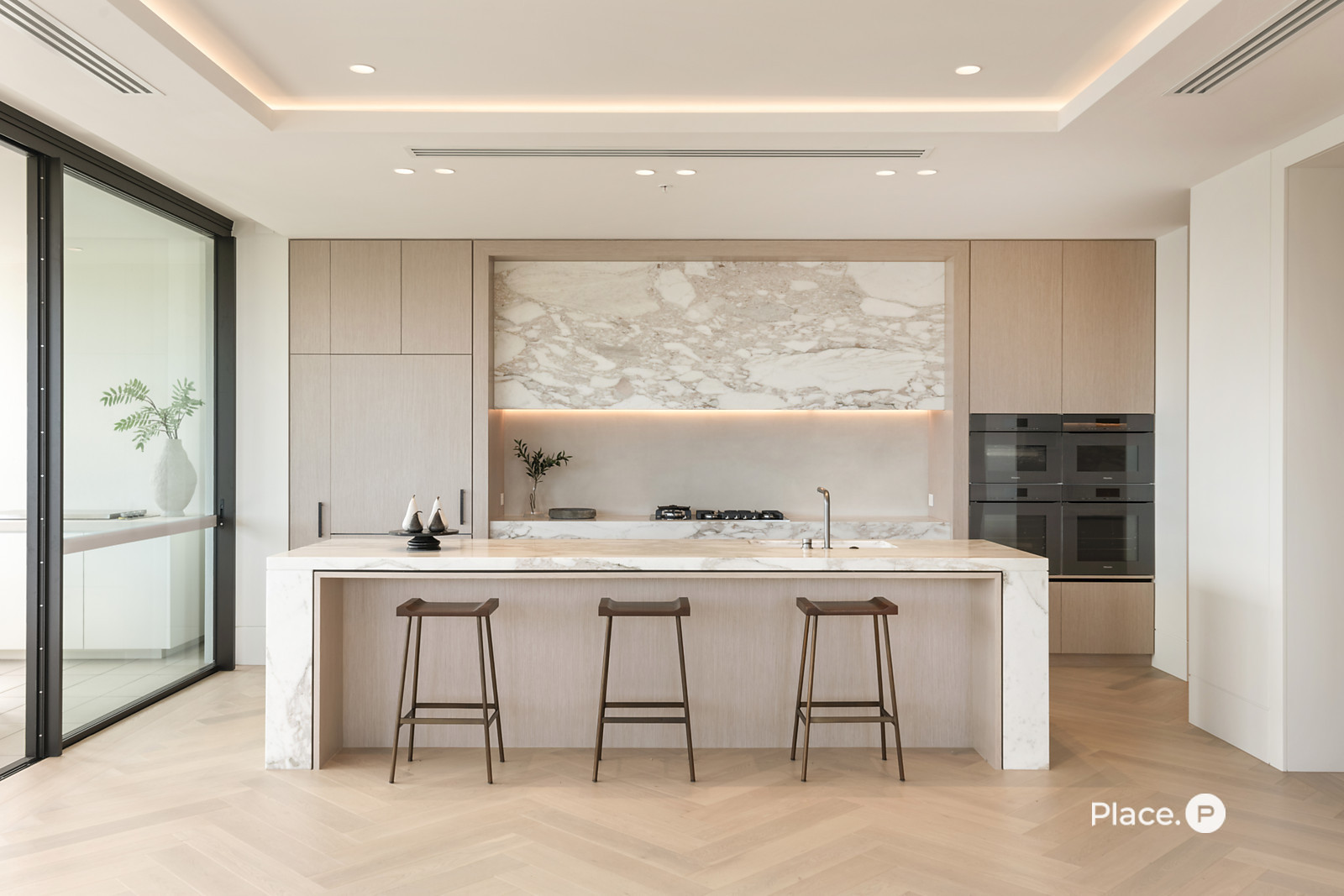 The intricately crafted kitchen becomes the centerpiece of the home with a luxurious island bench finished with high-quality appliances, an abundance of storage and butler’s pantry.