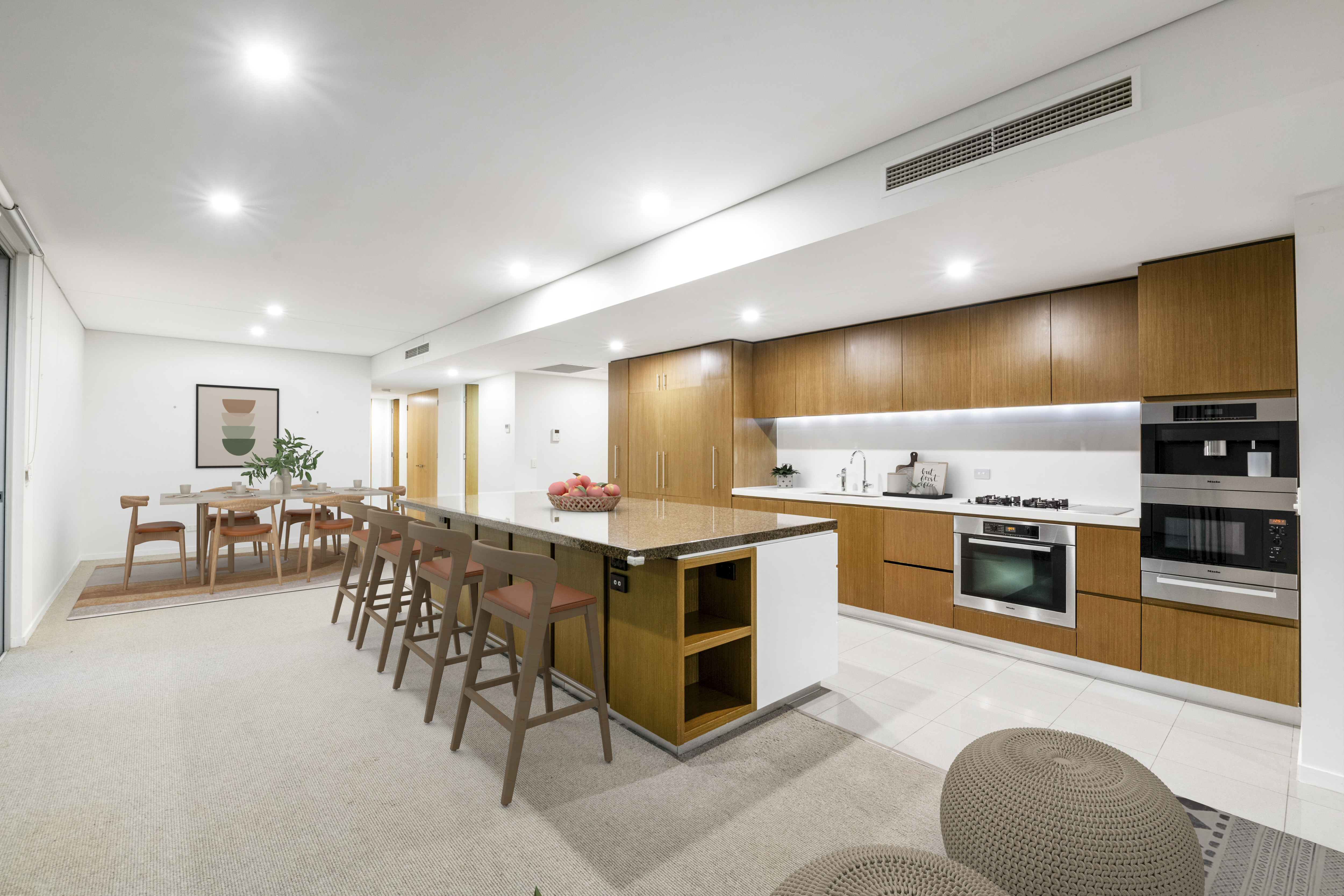 Step inside and experience space, light, and effortless flow. The open-plan living and dining area connects seamlessly to a private balcony, capturing river breezes and leafy outlooks. The modern kitchen is fitted with quality appliances, stone benchtops, and ample storage — perfect for both entertaining and everyday living.