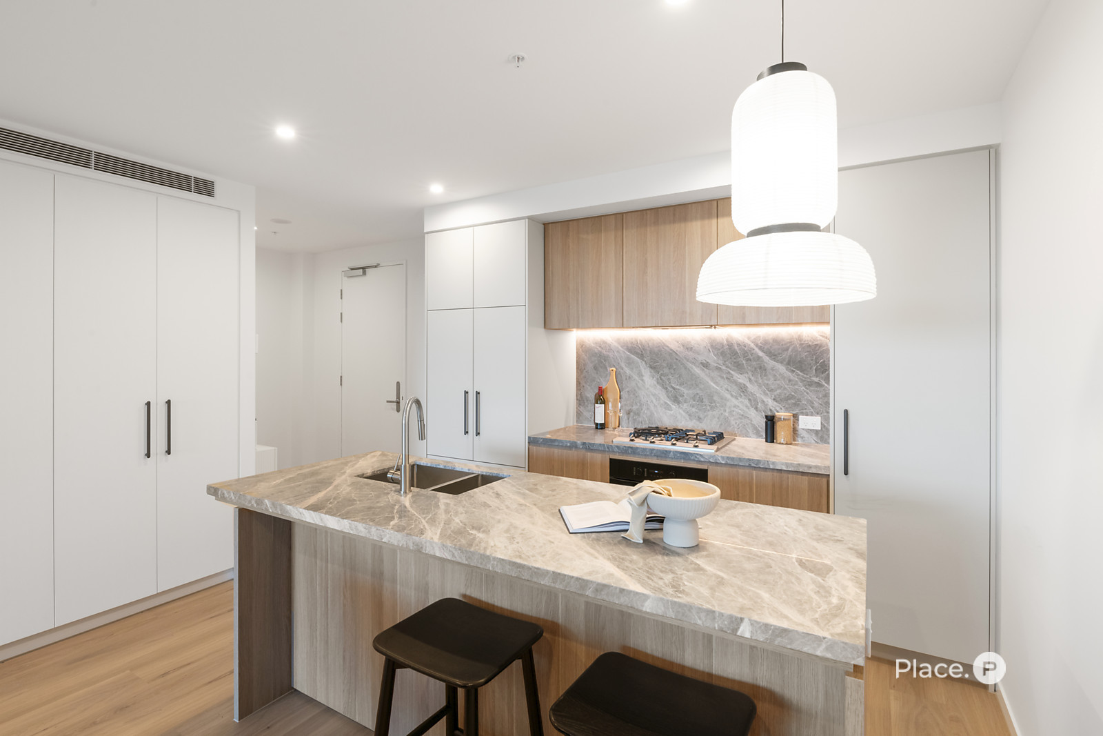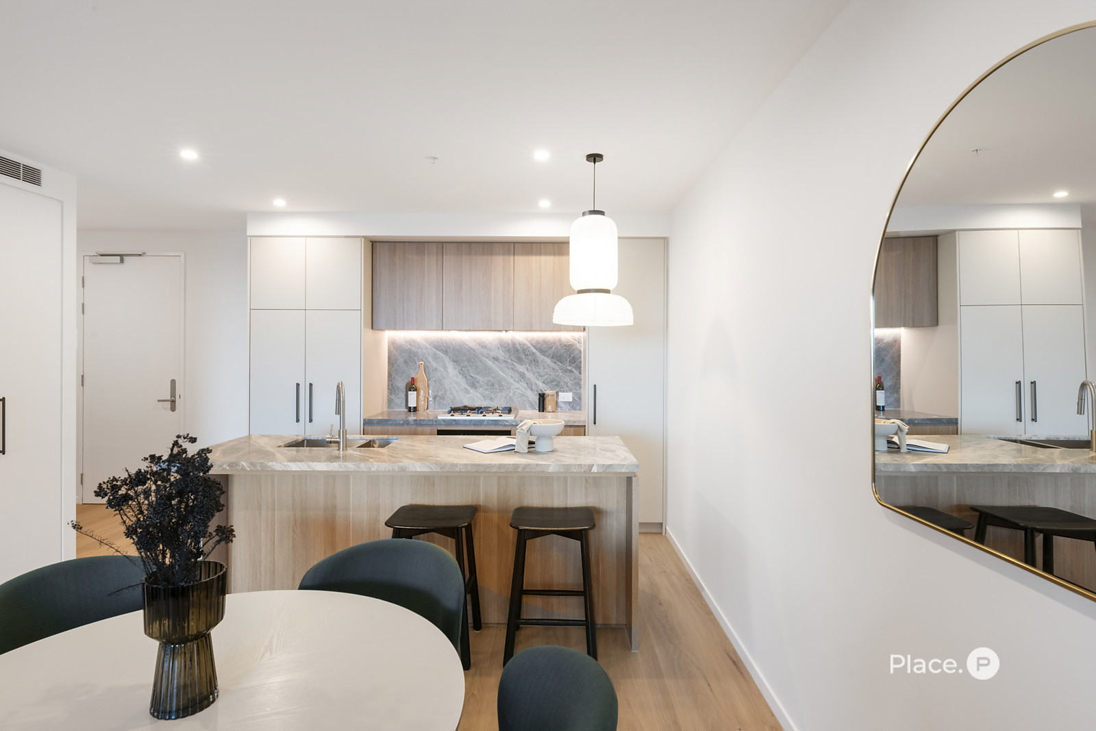 Benefitting from rare secure side-by-side parking for two cars, the property also includes fantastic storage, ducted air-conditioning and ceiling fans. Residents can also enjoy access to the complex’s state-of-the-art techno-gym, steam room, sana and exclusive ground-level lounge. Additionally, a glamorous rooftop entertainment area features barbecue amenities, communal gardens and an infinity pool capturing breathtaking city views.