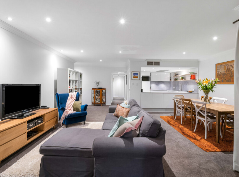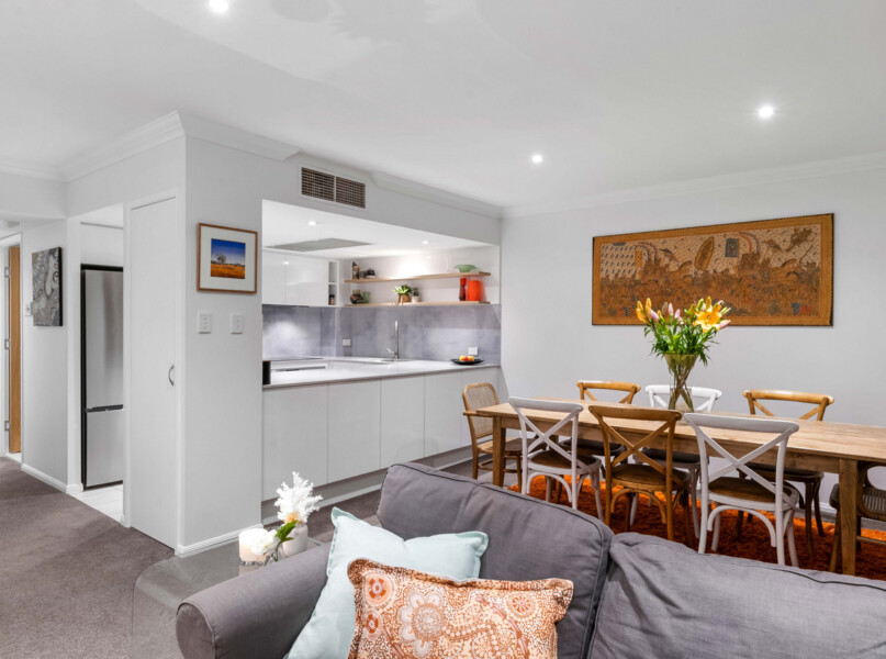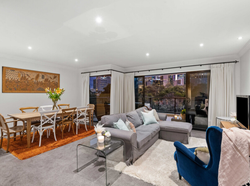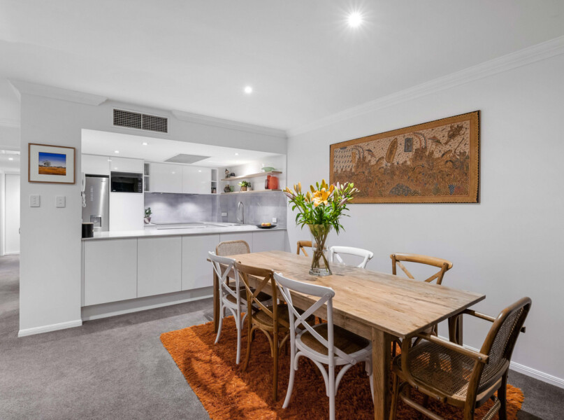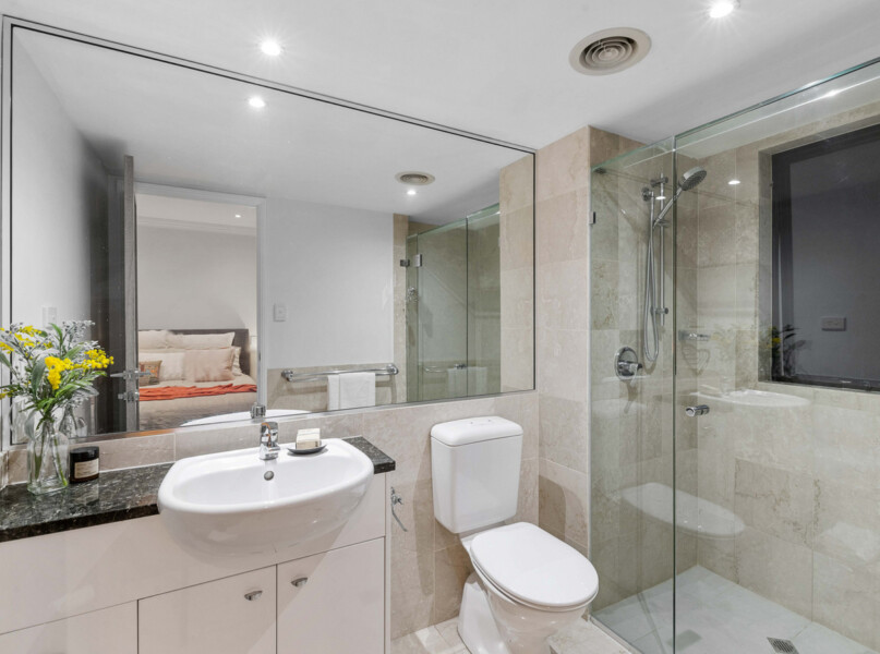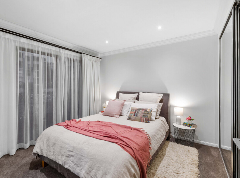 The apartment exudes contemporary elegance with updated modern ceilings, lighting, upgraded wardrobes to ensure optimal storage and thoughtfully chosen sheer and block-out curtains that grace every room. The neutral-toned updated wooden doors add to the property’s refined aesthetic.