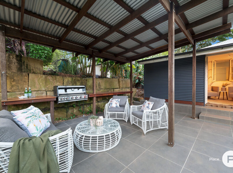 – Covered al fresco area encompassing a built-in barbecue and timber benches