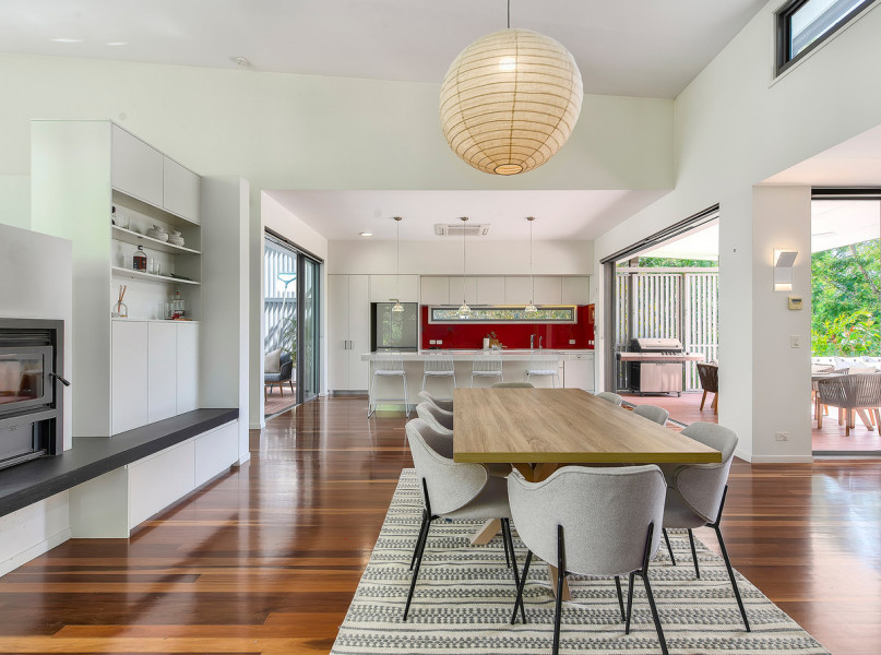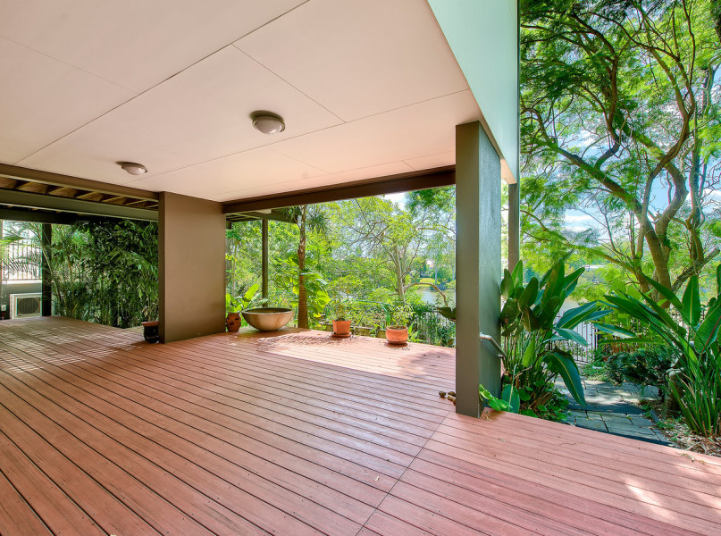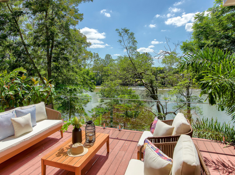 Sitting on a huge 1166sqm riverfront block, this four-bedroom, three-bathroom house is an inner-city sanctuary that fully embraces the Brisbane lifestyle.