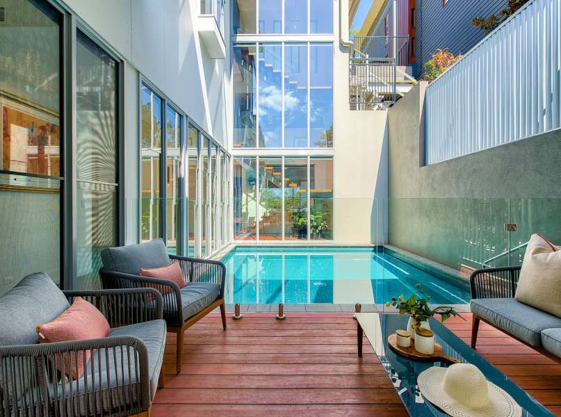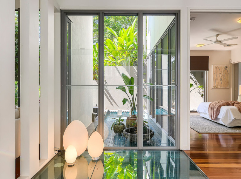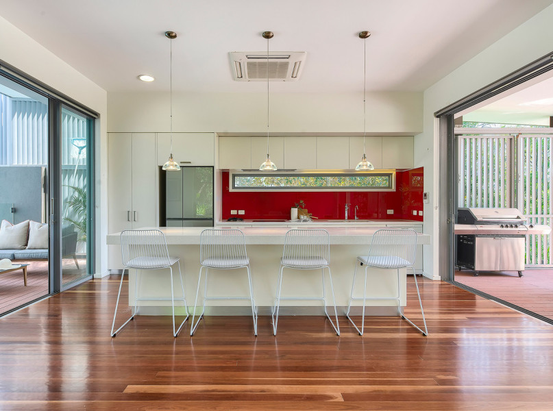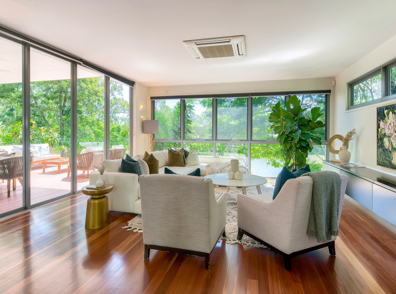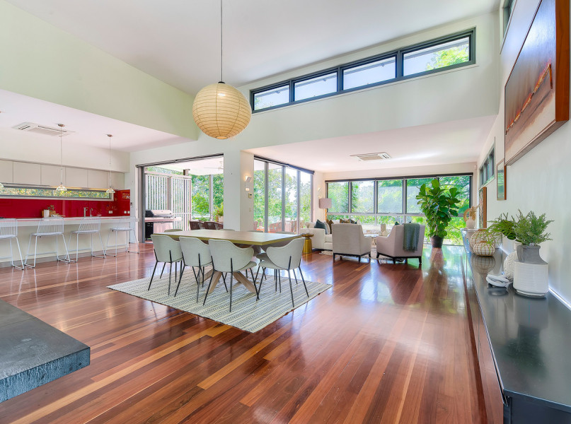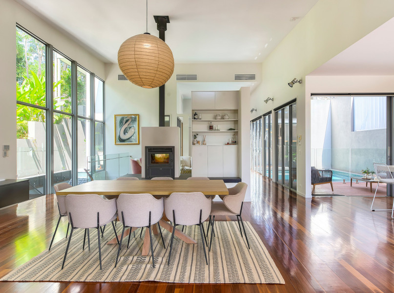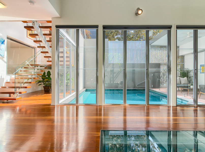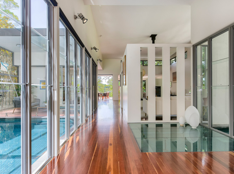 The heart of the home is spectacular, it engages three essential elements- crowned by impressive seven-meter-high ceilings, full height glass walls and warm timber tones, the river views and breezes catch you by surprise from every room.