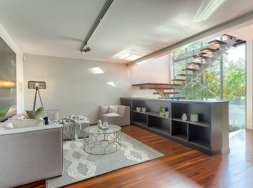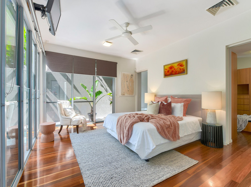 Hidden away on this same level is the master suite. Relax in the spa bath at the end of a long day in the hotel-like ensuite, find a dressing gown from the extensive walk-in wardrobe, and soak up the river view as day turns to night.