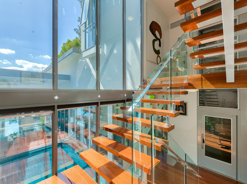 Outstanding 20m direct riverfront land, this stunning home utilises a state of the art glass lift from top to living level where soaring 7m ceilings offer the art lover copious display space.