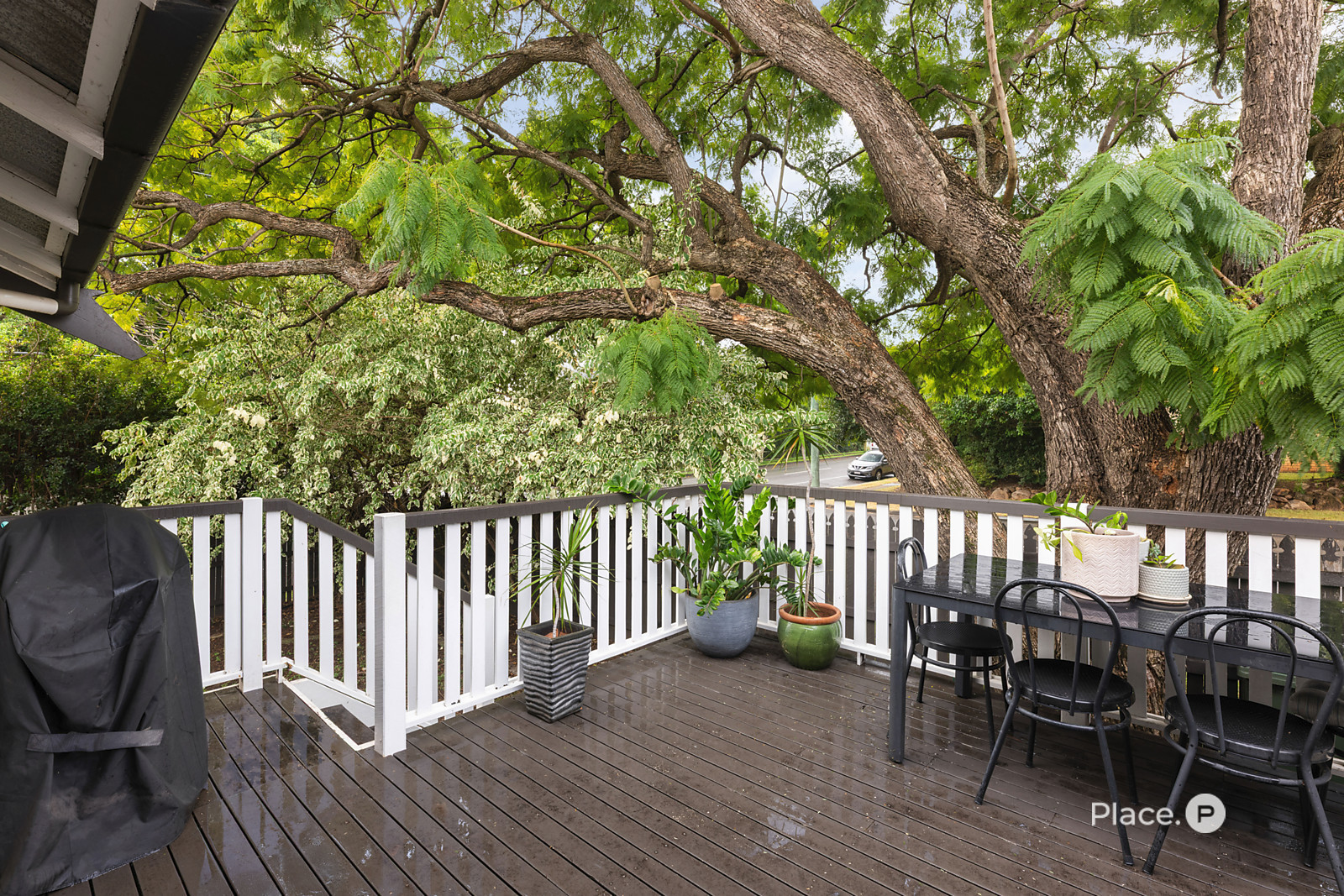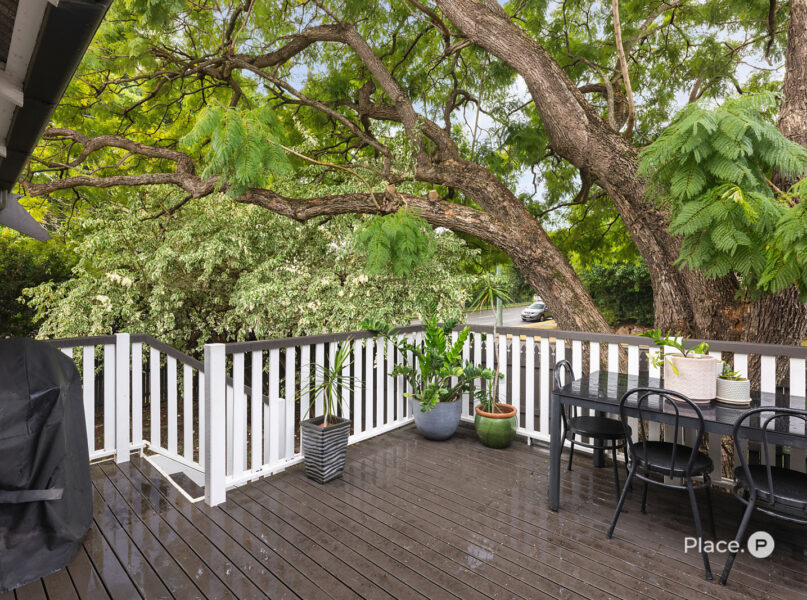 Unwind on the peaceful side deck, surrounded by beautifully landscaped gardens and the serenity of a leafy, tree-lined street.