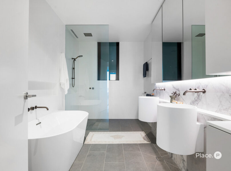 Entertainers and avid cooks alike will also appreciate the apartment’s incredible kitchen complete with a full suite of Gaggenau appliances, the kitchen features natural stone splashbacks, stone benchtops, a large natural honed stone highlighted breakfast bar and ample cupboard storage space thoughout.
