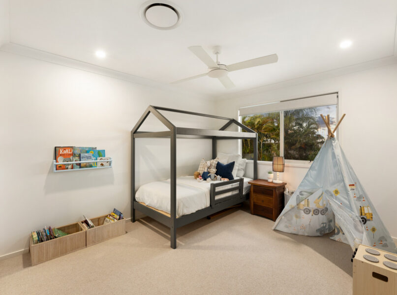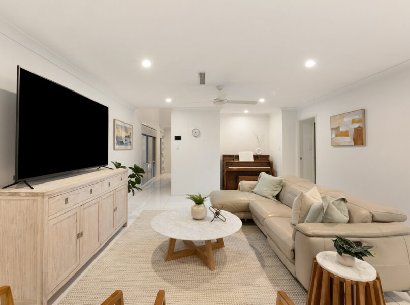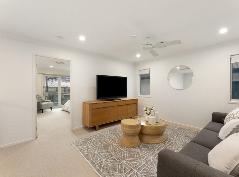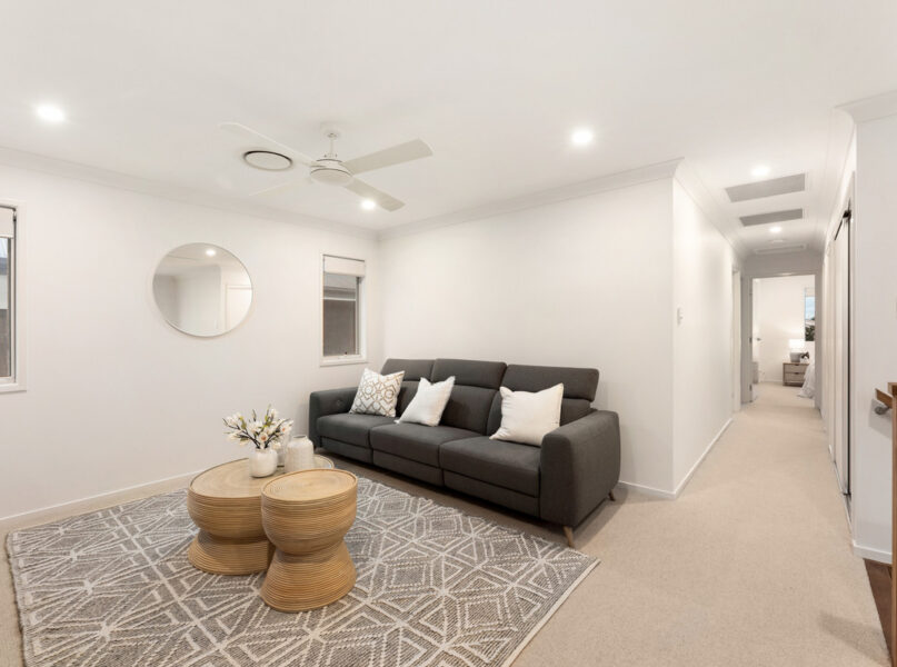 Ascend the staircase to the upper level, where you’ll discover four generously sized bedrooms arranged around a second living room, further enhancing the family-centric design. The main bedroom indulges with a walk-in robe and an ensuite bathroom completed with his-and-her basins, while the remaining three bedrooms offer built-in robes and share a well-appointed main bathroom with a bath and separate shower.