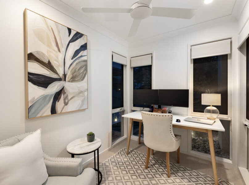 In the heart of the home, you’ll find an expansive kitchen that will be the delight of any chef. It boasts impressive stone benchtops, ample storage, a dishwasher, a large oven with a gas cooktop, and a convenient walk-in pantry. Adjacent to the kitchen, you’ll find a private study, a powder room, laundry, and internal access to the double lock-up garage, with additional storage space.