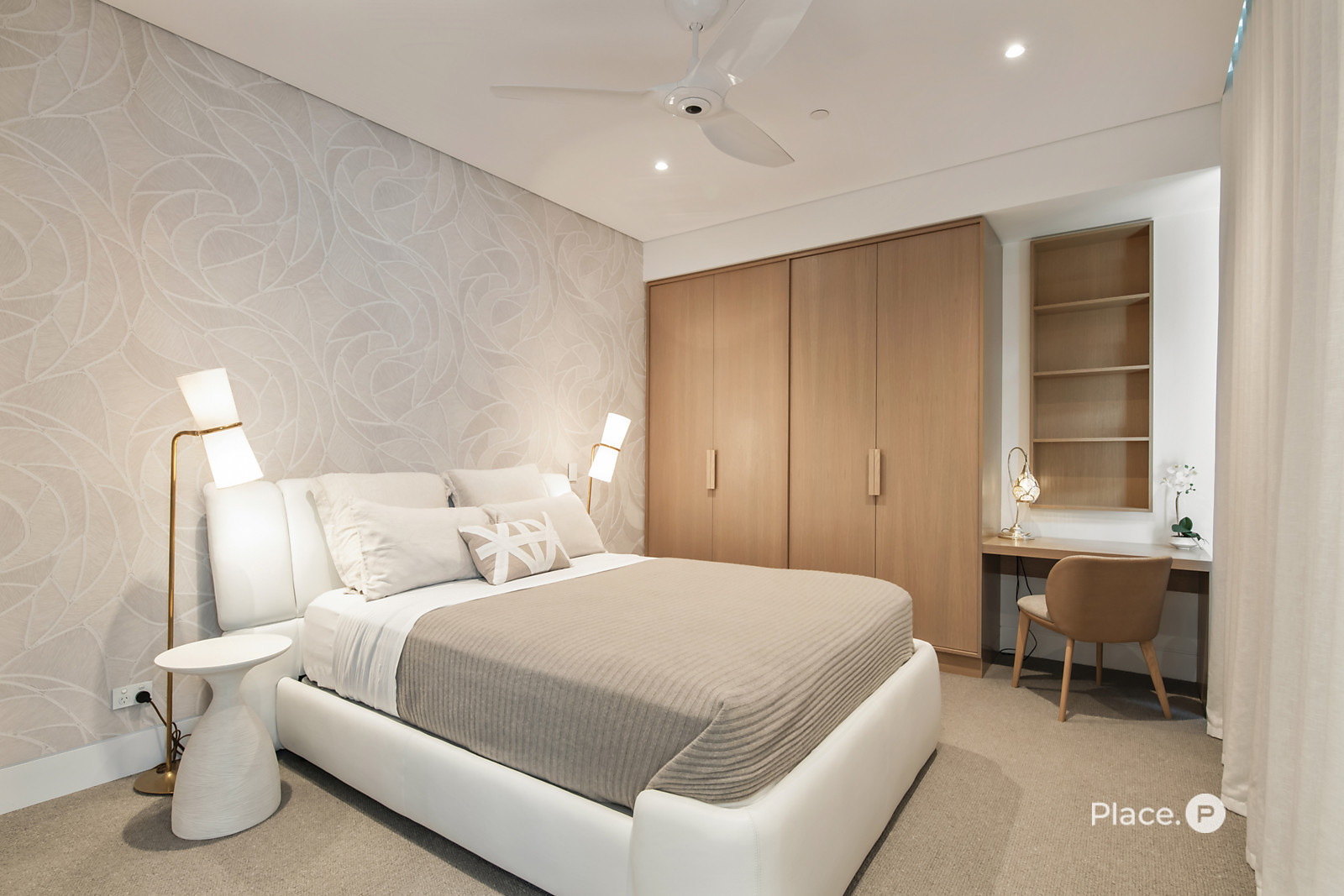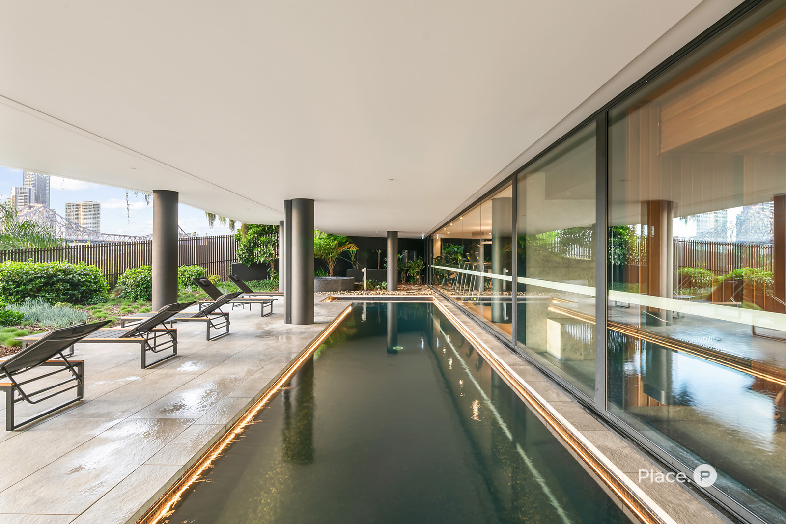 Close to the scenic New Farm Riverwalk and the Sydney Street Ferry Terminal, this immaculate property is near the popular Howard Smith Wharves and James Street precincts. New Farm Park’s leafy grounds, the Brisbane Powerhouse theatre, tree-dotted Merthyr Park and vibrant Fortitude Valley are minutes away.