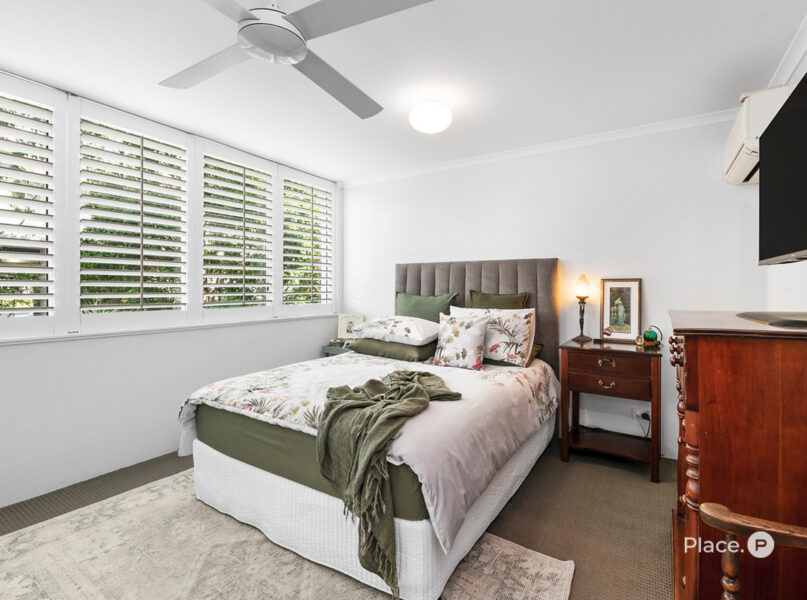 Throughout the residence, you’ll find plantation shutters for privacy and aesthetic charm, along with ceiling fans and blinds thoughtfully placed throughout. The fully equipped kitchen comes with modern conveniences, and there is air conditioning in the master bedroom and living room.