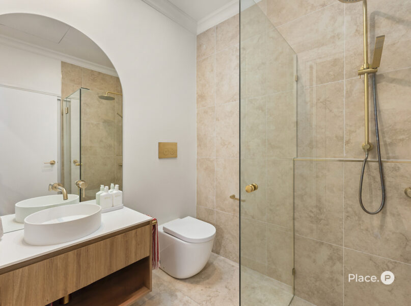 Two additional bedrooms both have their own dual-access ensuites; one features a walk-in robe and the other boasts a built-in robe.